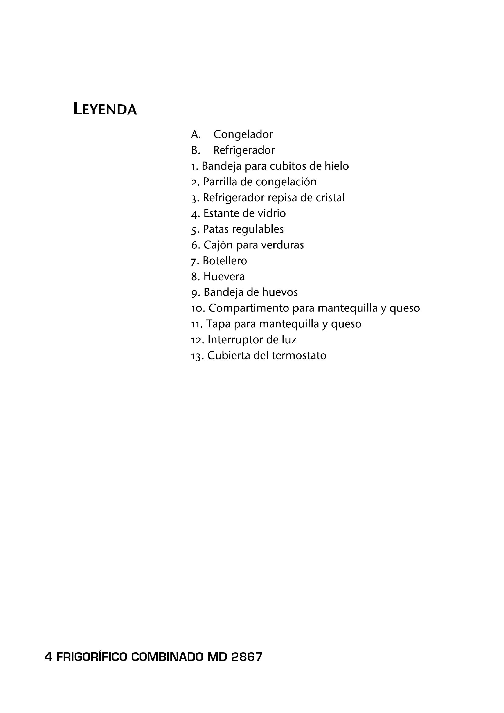 - Especificaciones FRIGORÍFICO COMBINADO MD 2867 LEYENDA A. Congelador B. Refrigerador p. 284