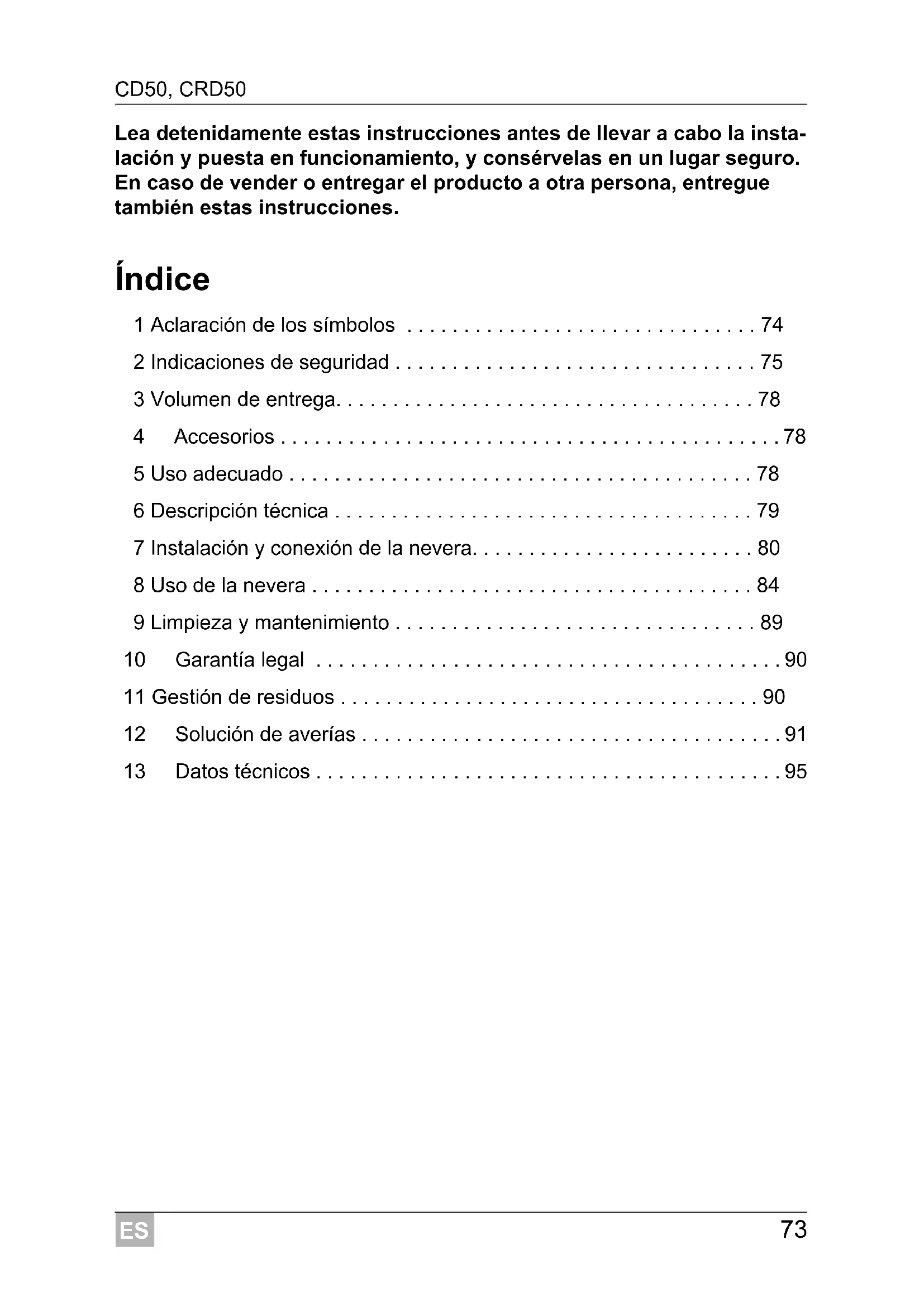 - 13 Datos técnicos ES Aclaración de los símbolos CD50, CRD50 p. 95