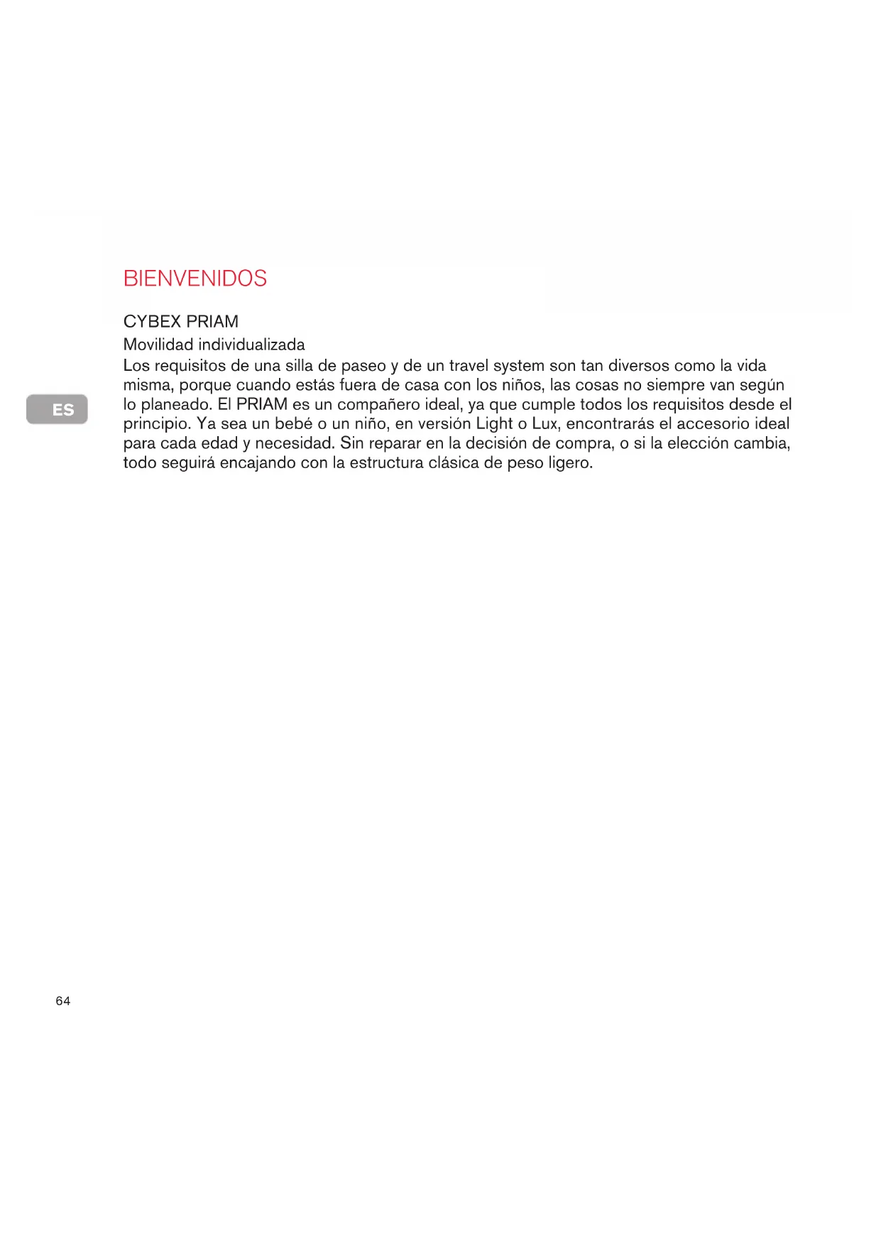 BIENVENIDOS Los requisitos de una silla de paseo y de un travel system son tan diversos como la vida misma, porque cuando estás fuera de casa con los niños, las cosas no siempre van según lo planeado. El PRIAM es un compañero ideal, ya que cumple todos los requisitos desde el principio. Ya sea un bebé o un niño, en versión Light o Lux, encontrarás el accesorio ideal para cada edad y necesidad. Sin reparar en la decisión de compra, o si la elección cambia, todo seguirá encajando con la estructura clásica de peso ligero. Movilidad individualizada CYBEX PRIAMES