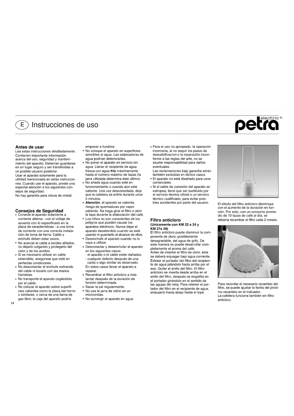 KM 22 - Maquina de cafe Petra Electric - Manual de uso y guía de instrucciones gratis