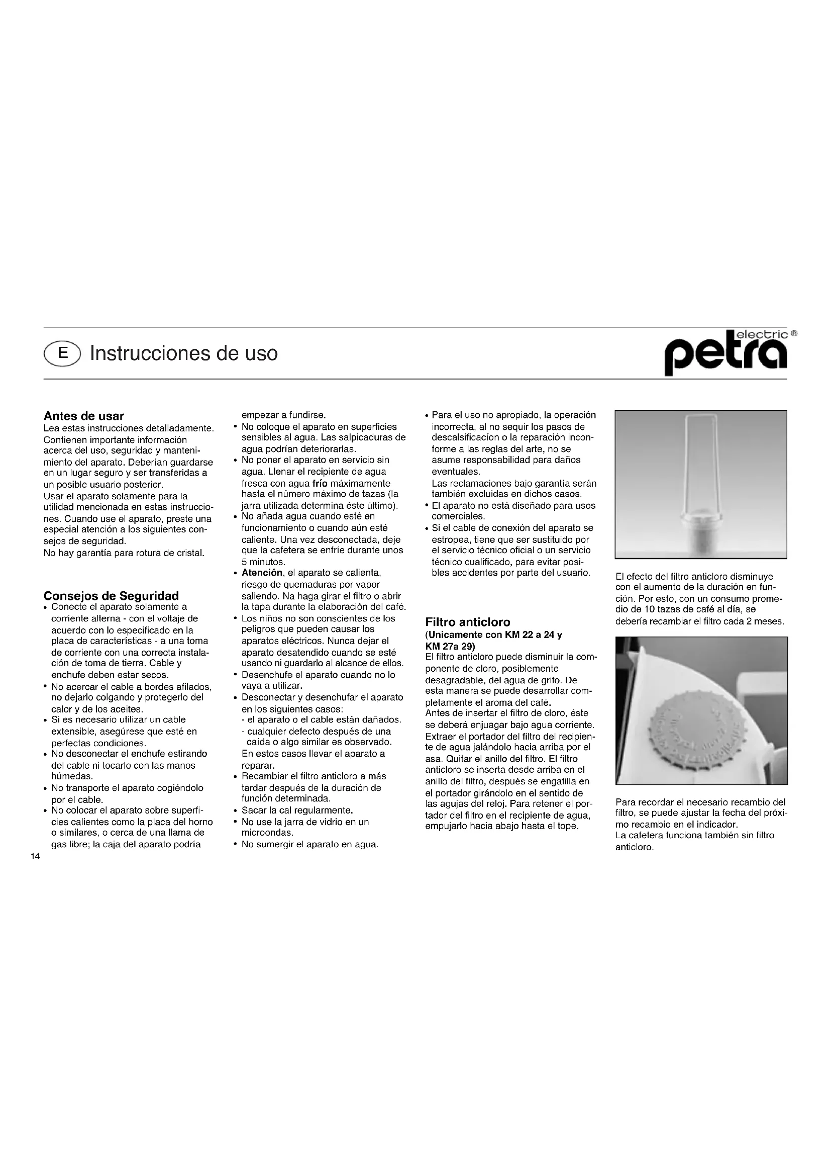 KM 20 - Maquina de cafe Petra Electric - Manual de uso y guía de instrucciones gratis