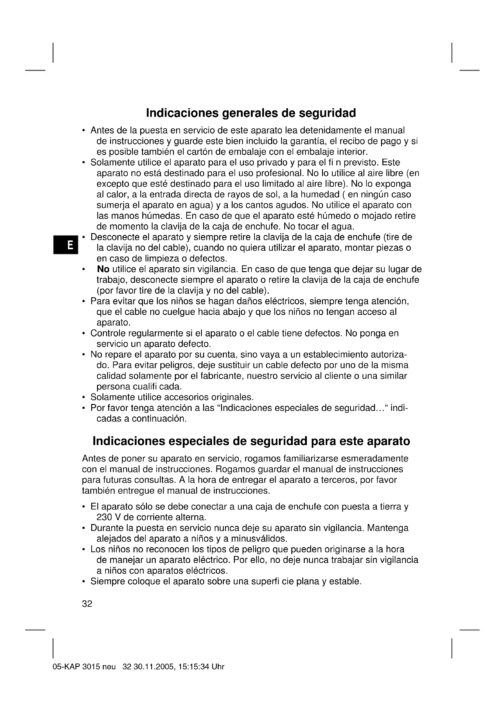 - Siempre coloque el aparato sobre una superfi cie plana y estable. 05-KAP 3015 neu 32 30.11.2005, 15:15:34 UhrE
