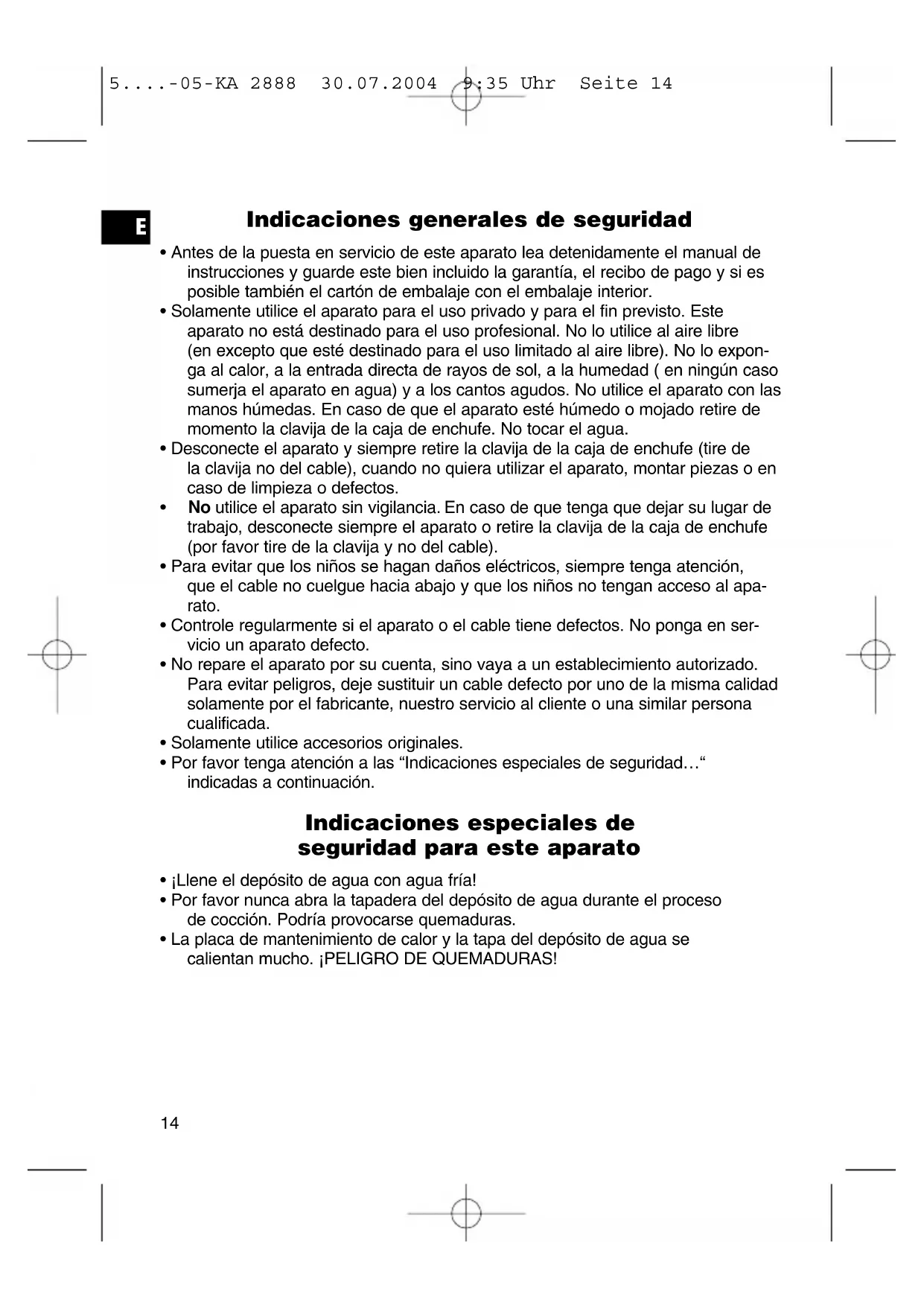 - Por favor tenga atención a las “Indicaciones especiales de seguridad…“ indicadas a continuación. Indicaciones especiales de seguridad para este aparato