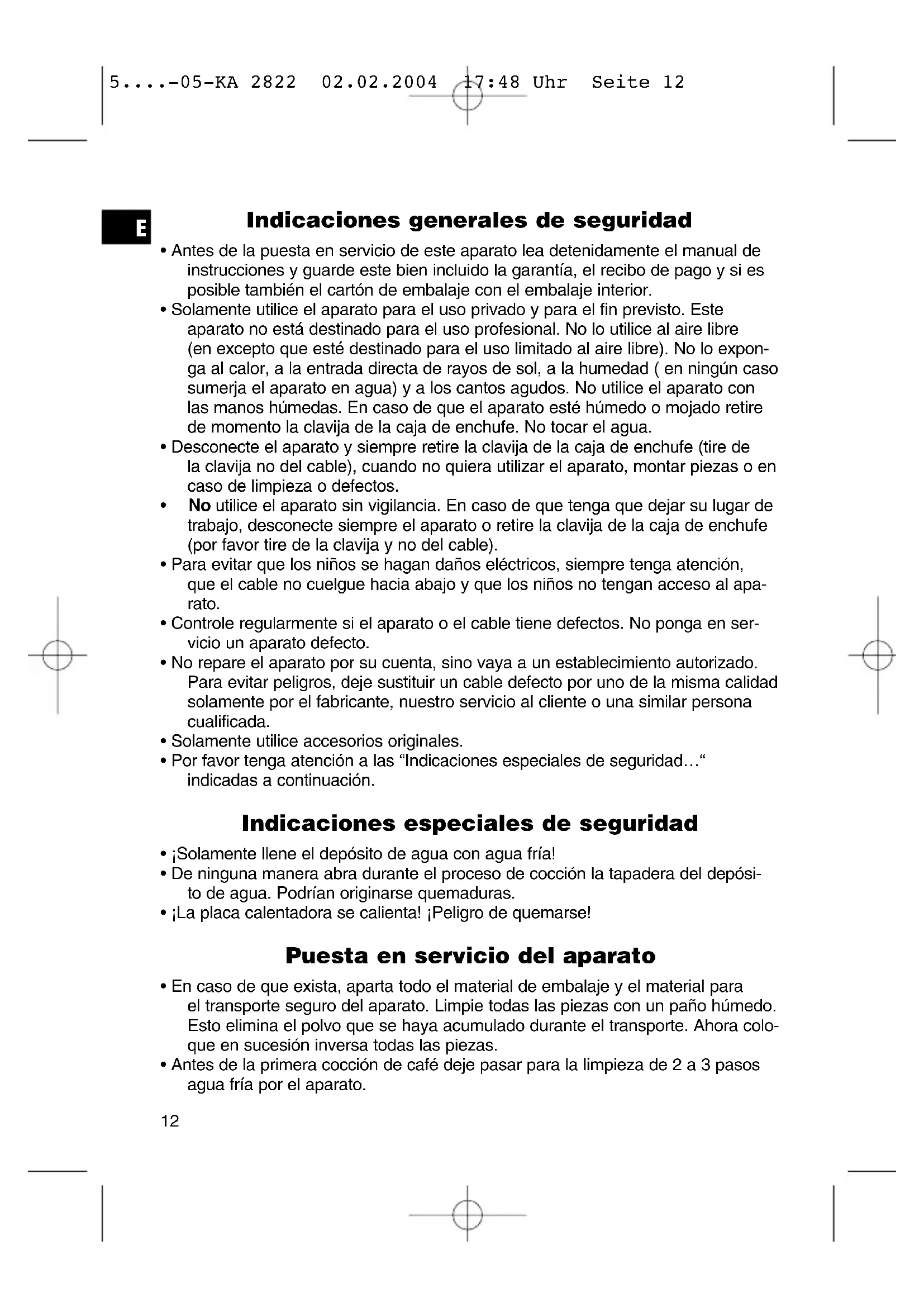 - Antes de la puesta en servicio de este aparato lea detenidamente el manual de instrucciones y guarde este bien incluido la garantía, el recibo de pago y si es posible también el cartón de embalaje con el embalaje interior.