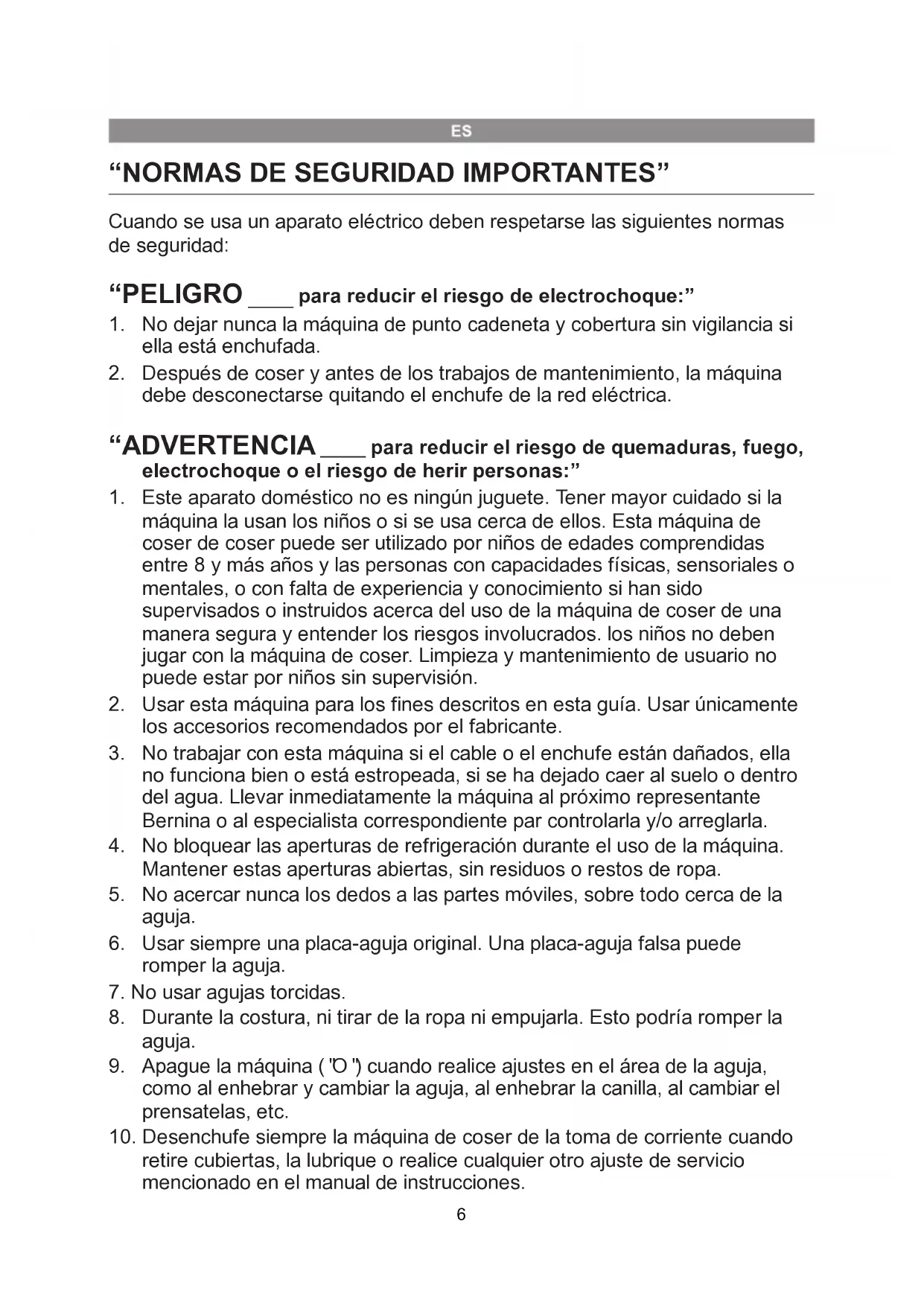1. No dejar nunca la máquina de punto cadeneta y cobertura sin vigilancia si