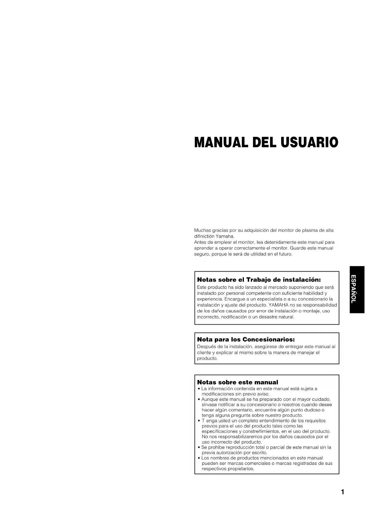 Muchasgracias por suadquisacion del monitor de plasma de alta difiniction Yamaha.