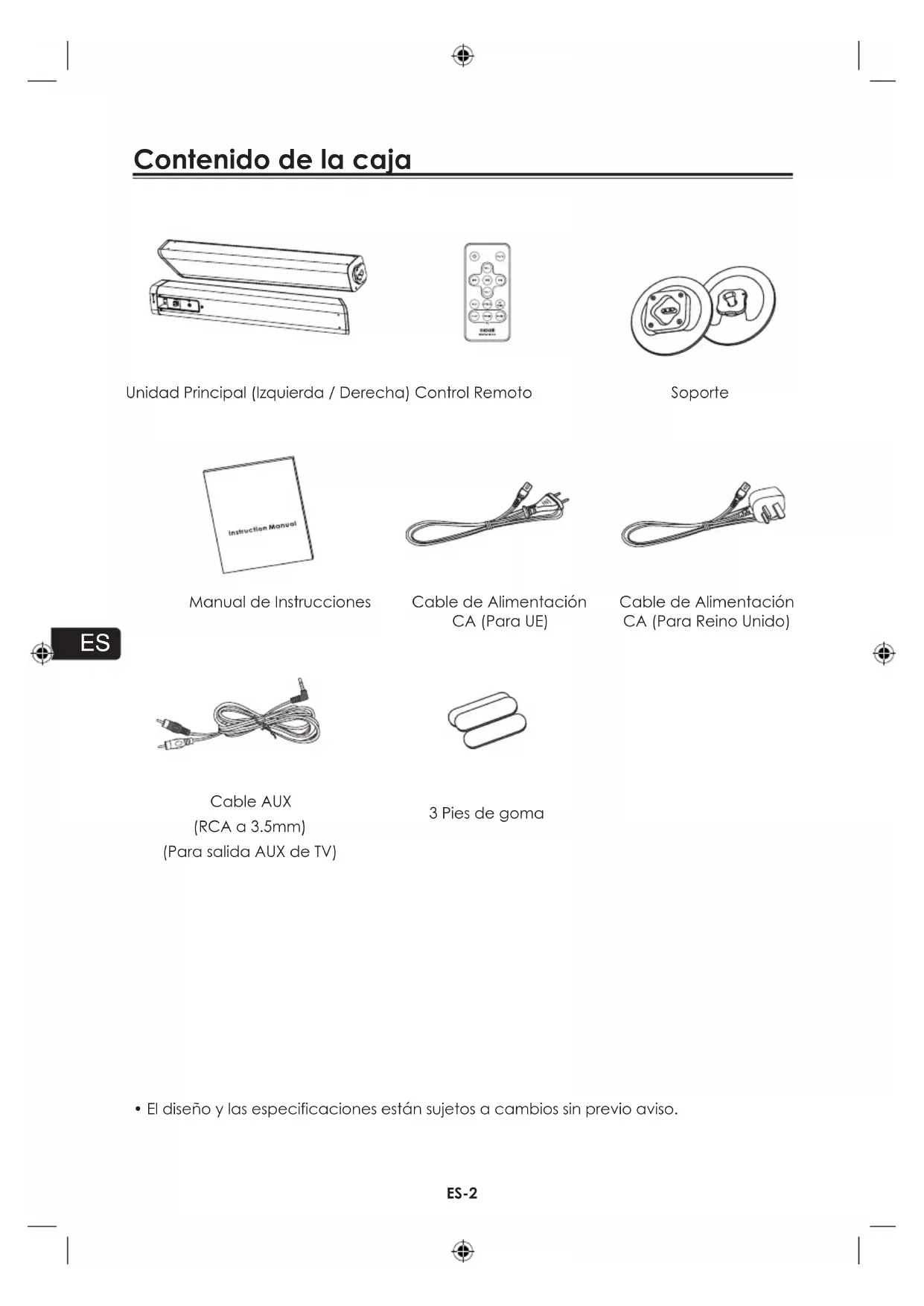 -Esta barra de sonido no está diseñada para uso en instalaciones ni en equipos que pudieran afectar la vida de las personas, como equipos Médicos, dispositivos nucleares, equipos aeroespaciales o equipos de transporte, ni en instalaciones o en equipos querequirean un alto nivel de fiabilidad.