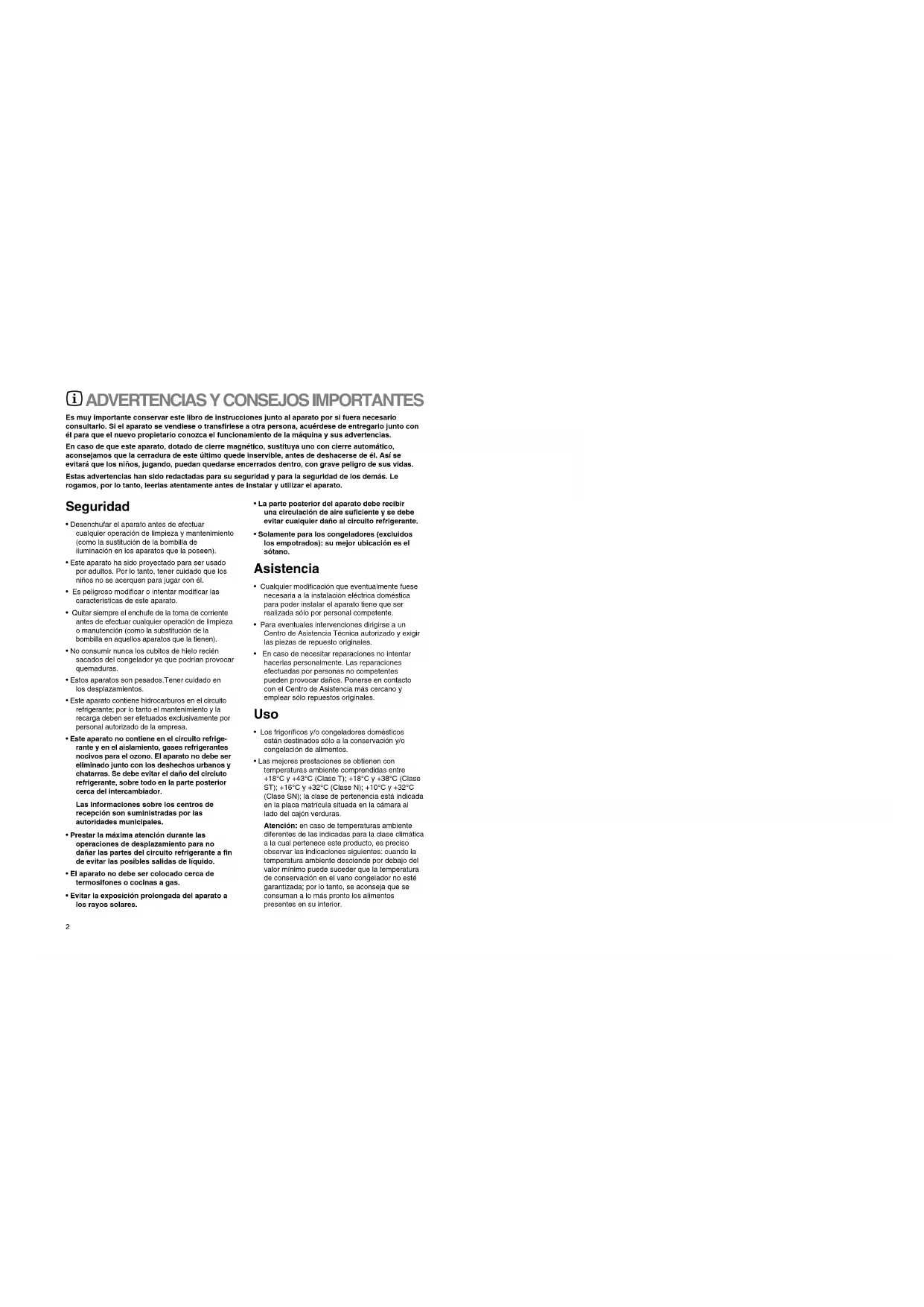 - Los frigoríficos y/o congeladores domésticos están destinados sólo a la conservación y/o congelación de alimentos.