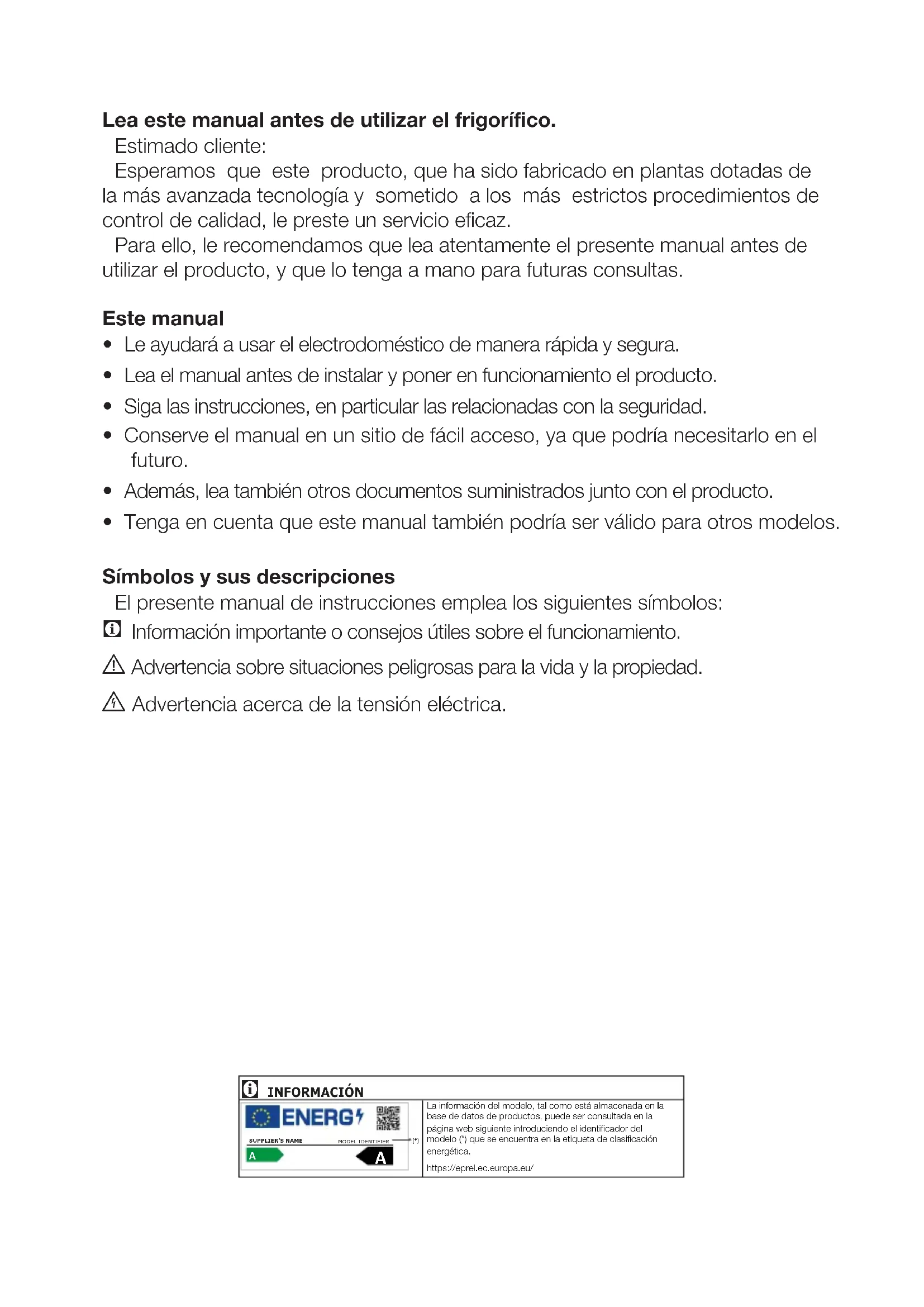 - Le ayudará a usar el electrodoméstico de manera rápida y segura.