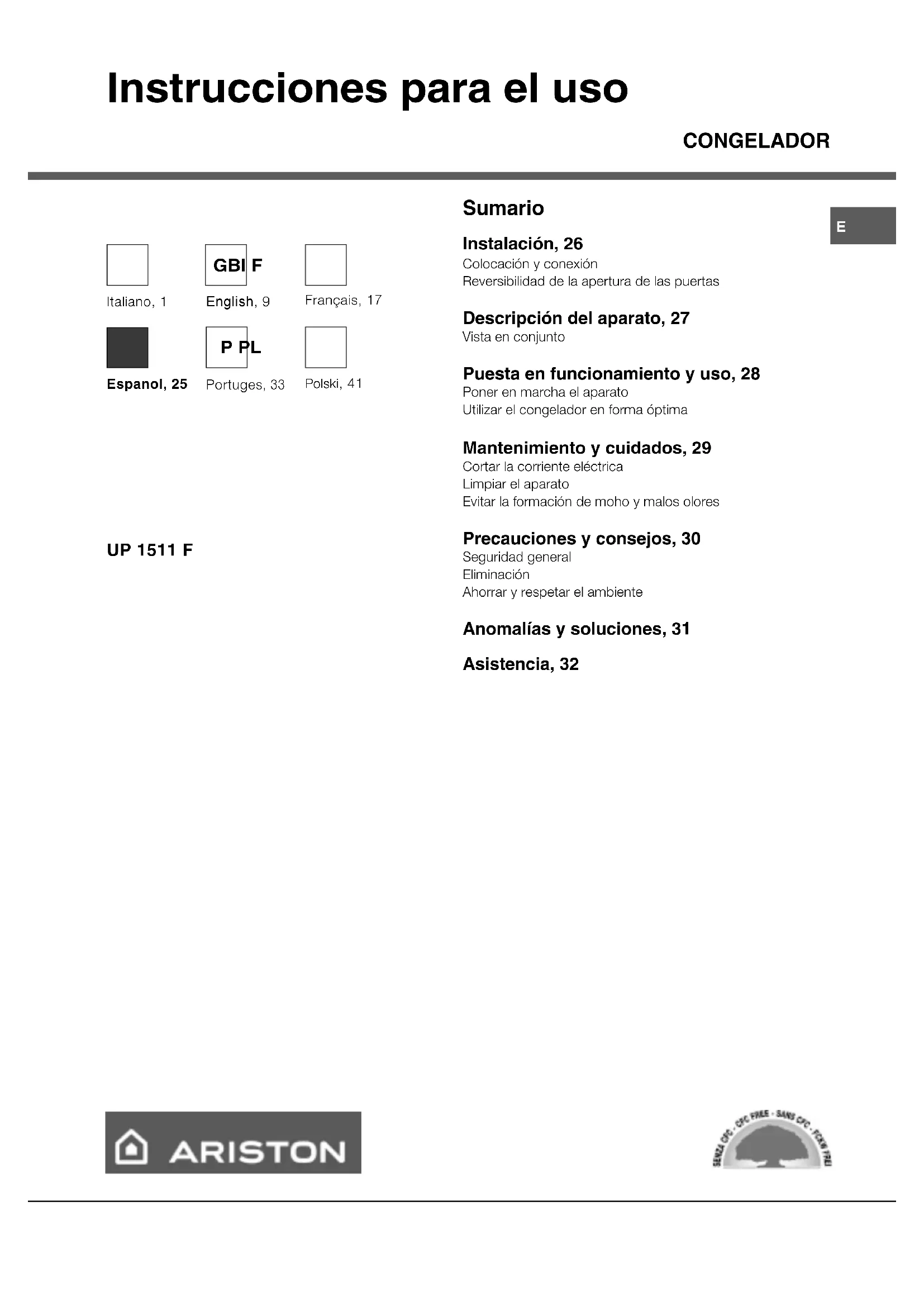 MANUAL DE USUARIO UP1511F Ariston Thermo