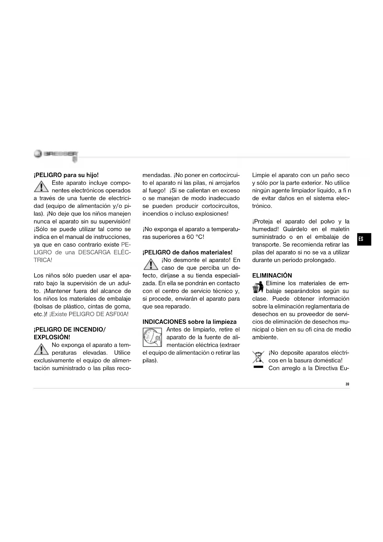 tu microscopio. Fíjate: los cristales parecen pequeños cubitos y tienen todos ellos la misma forma. Experimento nº 5: Hojas y agujas Objeto: 3 o 4 hojas o agujas distintas de árboles de hoja caduca y abeto. Un día que vayas de paseo con tus padres por el bosque puedes apro- vechar para recoger hojas y agujas del suelo. En casa las puedes colocar en una mesa unas junto a otras sobre un trozo de papel blanco. Coloca el microscopio sobre ellas y observa la apariencia diferente de las hojas y las agujas aplicando el aumento más pequeño. Fíjate: Las hojas de los árboles de hoja caduca presentan diferentes fragmentos más o menos uniformes separados entre sí por líneas. Estos fragmentos se conocen con el nom- bre de «celdas» El reverso de la hoja tiene habitualmente una aparien- cia algo distinta al anverso, y suele presentar un color más claro. Por la parte central discurre el peciolo de la hoja, en cuyo extremo más grueso se puede distinguir un «bulto» con una curvatura. Esta es la parte por donde creció la hoja a partir del árbol, an- tes de terminar cayendo de él. Hay también muchas hojas que tienen un peciolo en el que han crecido direc- tamente otras hojas por separado a través de otros peciolos. Las agujas de los abetos son alar- gadas, estrechas y redondeadas. Al igual que las hojas de los árboles de hoja caduca, presentan por un lado una ligera curvatura por donde han crecido a partir del abeto. Sin embar- go, no tienen «celdas» por separado, sino que parecen estar formadas de una sola pieza. Sin embargo, si se observan con mayor detenimiento, se da uno cuenta de que las agujas presentan muchos fragmentos, que dan testimonio de su crecimiento paulatino. Con este método puedes observar otros muchos objetos, como por ejemplo pequeños seres vivos (mos- cas, arañas, etc.) o cualquier otra cosa de tu vida cotidiana. Sólo tienes que poner el objeto que elijas sobre un fondo (una mesa) y colocar enci- ma tu microscopio. ¿Te has mirado alguna vez los pelos de tu cabeza? ¿No? Entonces prueba a pasarte tu microscopio manual por el pelo. Re- sulta sorprendente, pero te quedarás asombrado de todo lo que se puede descubrir allí. Igual que ocurre con esto, aún te quedan muchísimas co- sas por descubrir que son completa- mente nuevas para ti. ¡Pruébalo!Meade Instruments Europe GmbH & Co. KG Gutenbergstr. 2 DE-46414 Rhede Germany www.bresser-junior.de Irrtümer und technische Änderungen vorbehalten. · Errors and technical changes reserved. · Sous réserve d’erreurs et de modifi cations techniques. · Vergissingen en technische veranderingen voorbehouden. · Con riserva di errori e modifi che tecniche. · Queda reservada la posibilidad de incluir modifi caciones o de que el texto contenga errores.