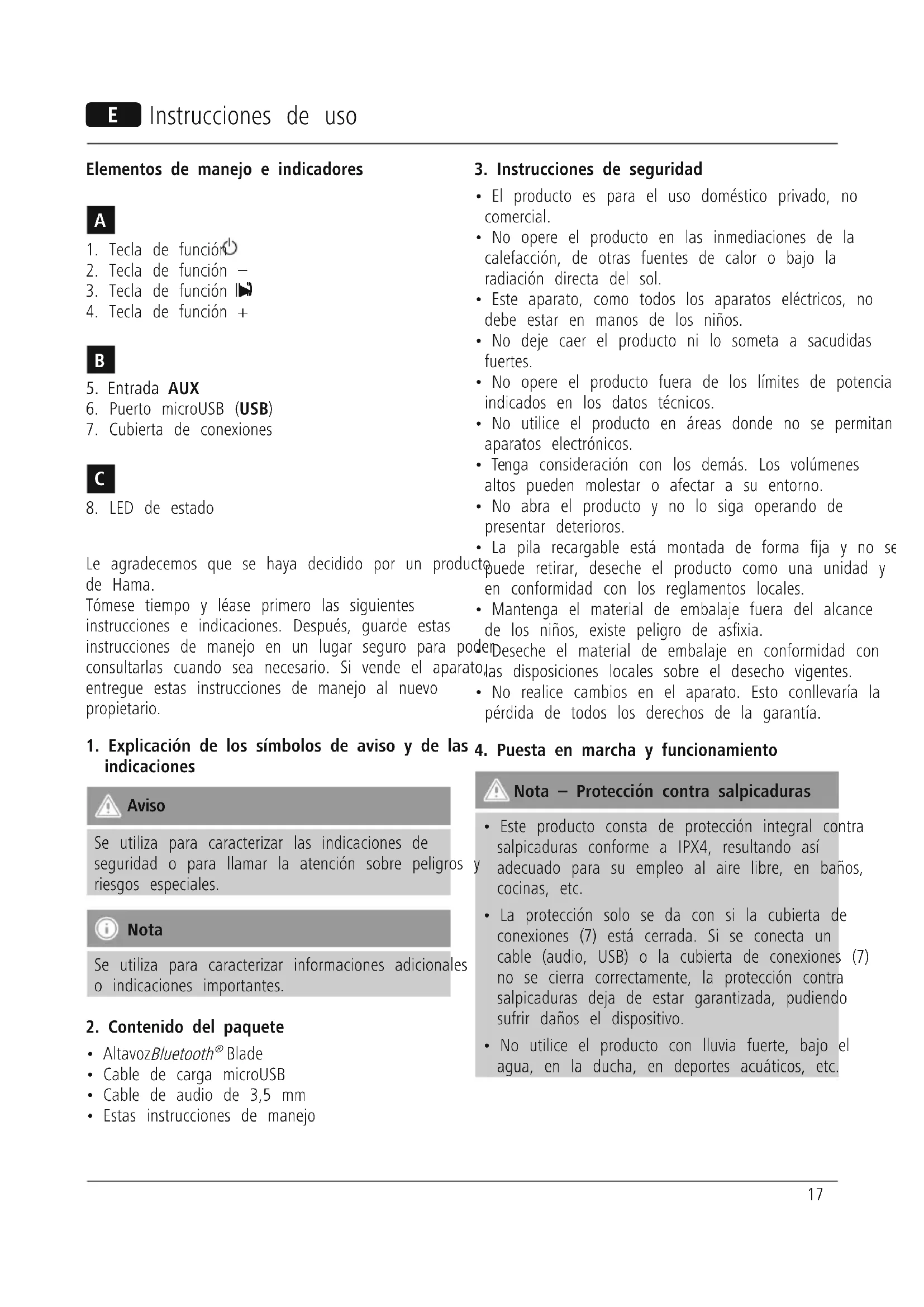 Le agradecemos que se haya decidido por un producto de Hama. Tómese tiempo y léase primero las siguientes instrucciones e indicaciones. Después, guarde estas instrucciones de manejo en un lugar seguro para poder consultarlas cuando sea necesario. Si vende el aparato, entregue estas instrucciones de manejo al nuevo propietario.