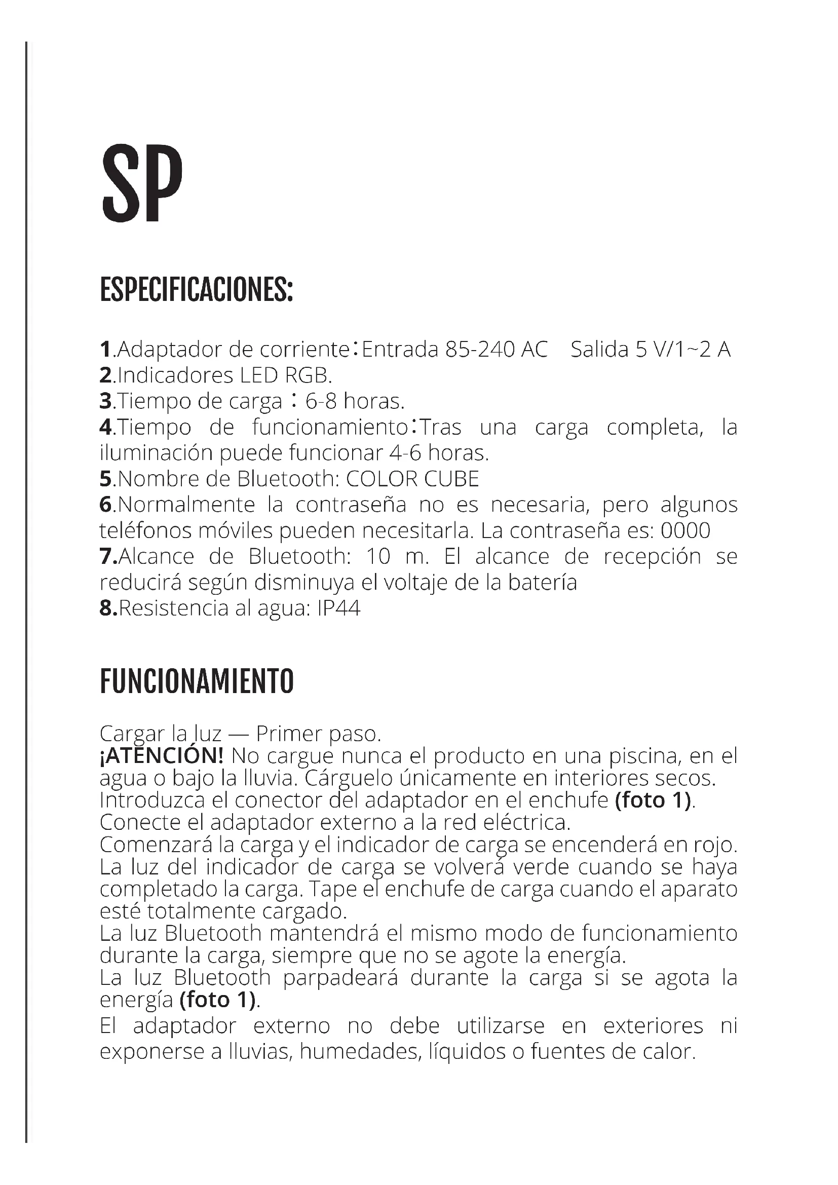 MANUAL DE USUARIO Color Cube L BIGBEN INTERACTIVE