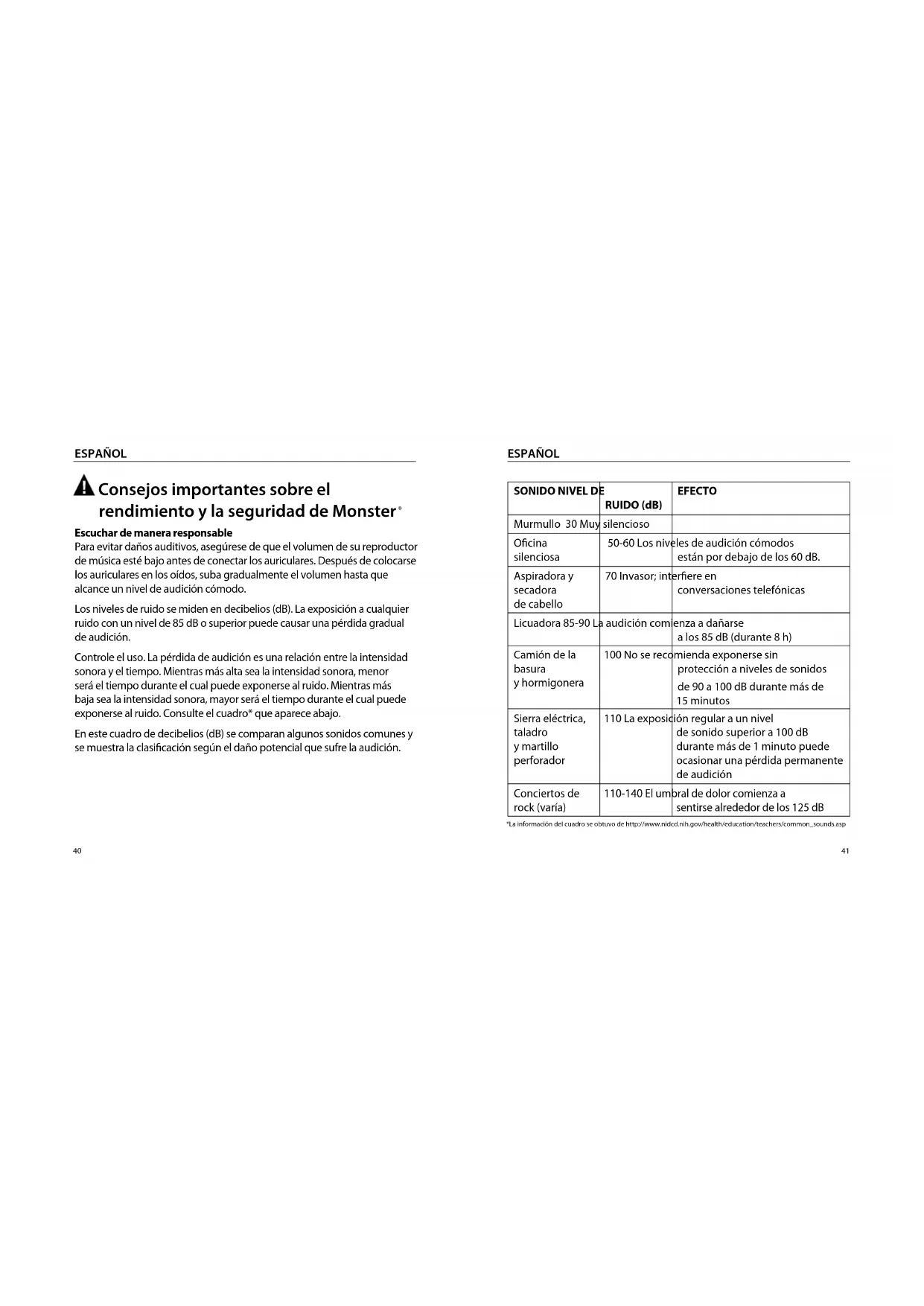 | SONIDO NIVEL DE RUIDO (dB) | EFFECTO | |