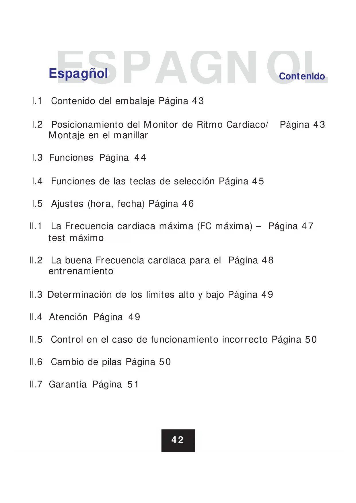 La Frecuencia cardiaca máxima (FC máxima) representa su Frecuencia cardiaca máxima cuando está en el límite de su capacidad física. Su FC máxima personal depende de su edad, sexo y condición física. El mejor modo de determinar su FC máxima personal es proceder a un test de esfuerzo. Le recomendamos realizar este test con un médico de medicina deportiva y repetir este test regularmente con el fin de controlar su condición física. La FC máxima puede también ser calculada mediante una ecuación matemática. Hombre: 210 – "mitad de la edad” – (0.11 x su peso en Kilos) + 4 Mujer: 210 – "mitad de la edad" – (0.11 x su peso en Kilos) espagñol48