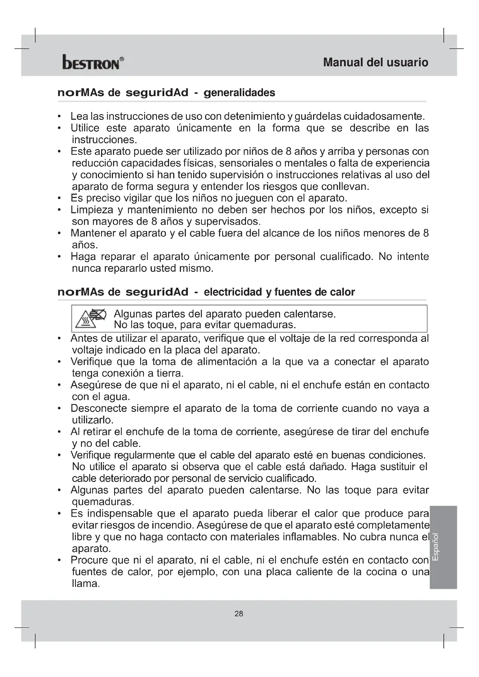 Encuentra gratis el manual del aparato DUE40028 BESTRON en formato PDF.