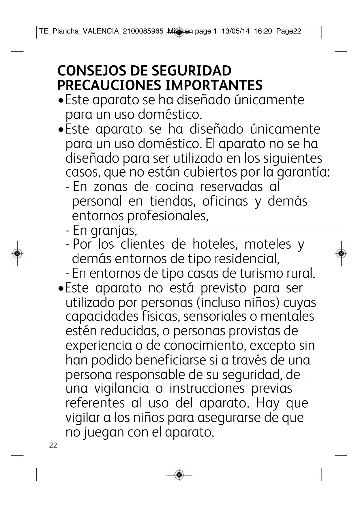 TE_Plancha_VALENCIA_2100085965_Mise en page 1 13/05/14 16:20 Page22• La temperatura de las superficies accesibles puede aumentar cuando el aparato esté en funcionamiento.