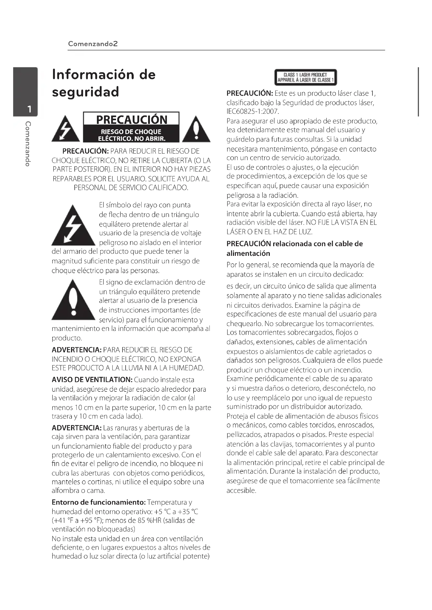 Información de seguridad PRECAUCIÓN