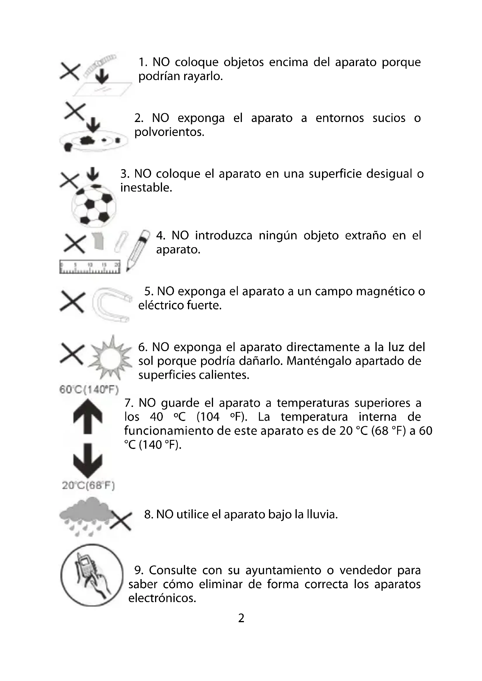2. NO exponga el aparato a entornos sucios o
