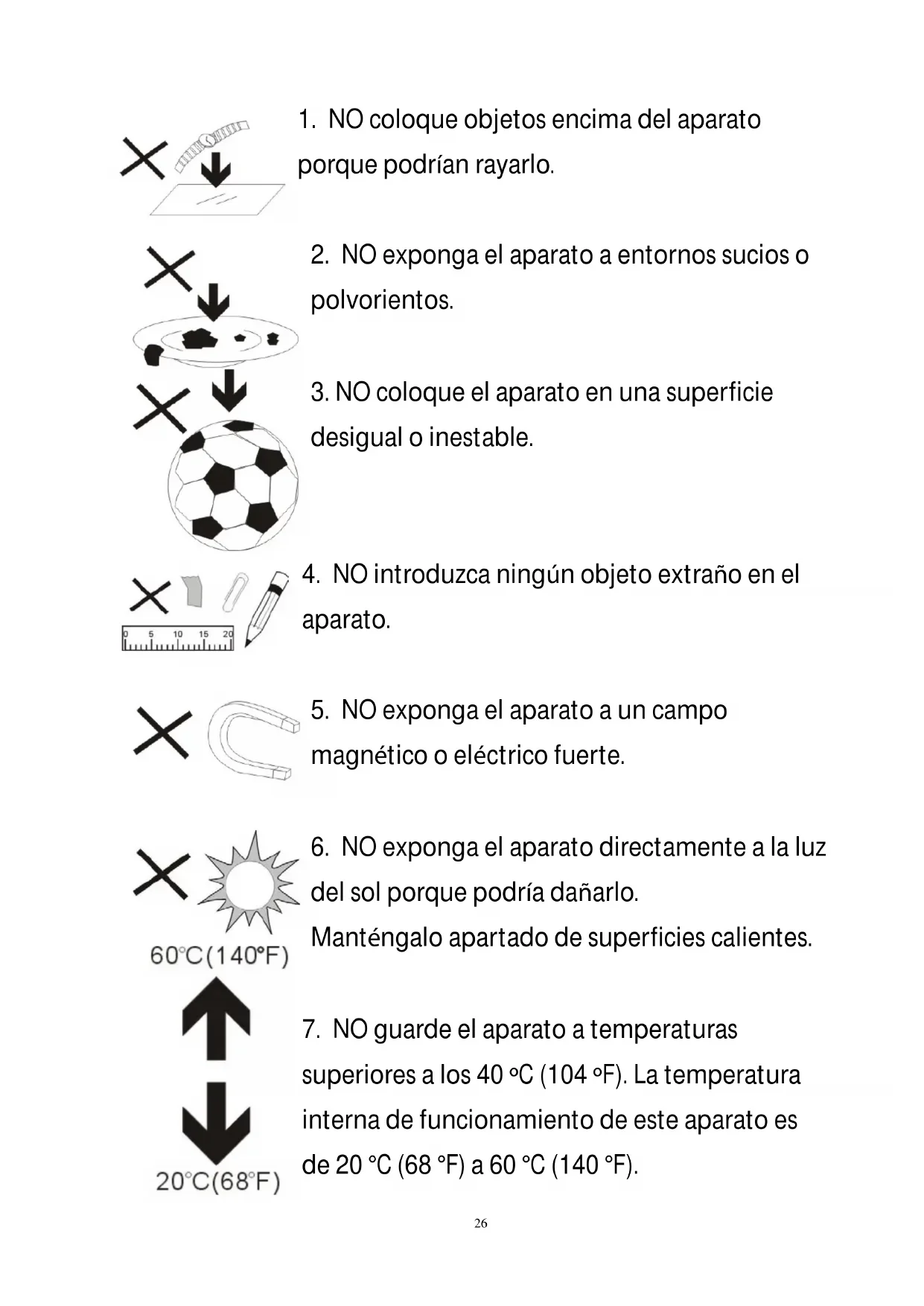 5. NO exponga el aparato a un campo