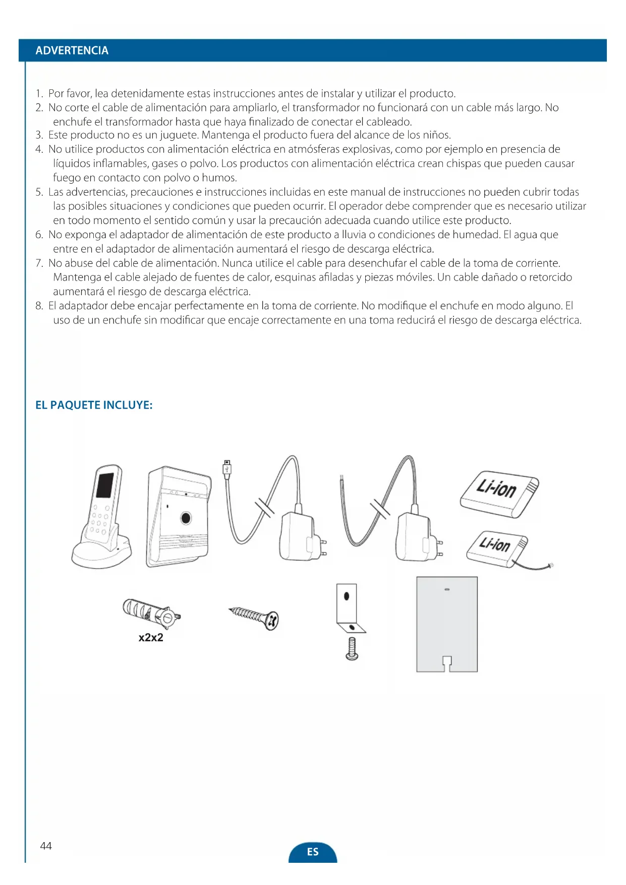 uso de un enchufe sin modificar que encaje correctamente en una toma reducirá el riesgo de descarga eléctrica. EL PAQUETE INCLUYE: ES45