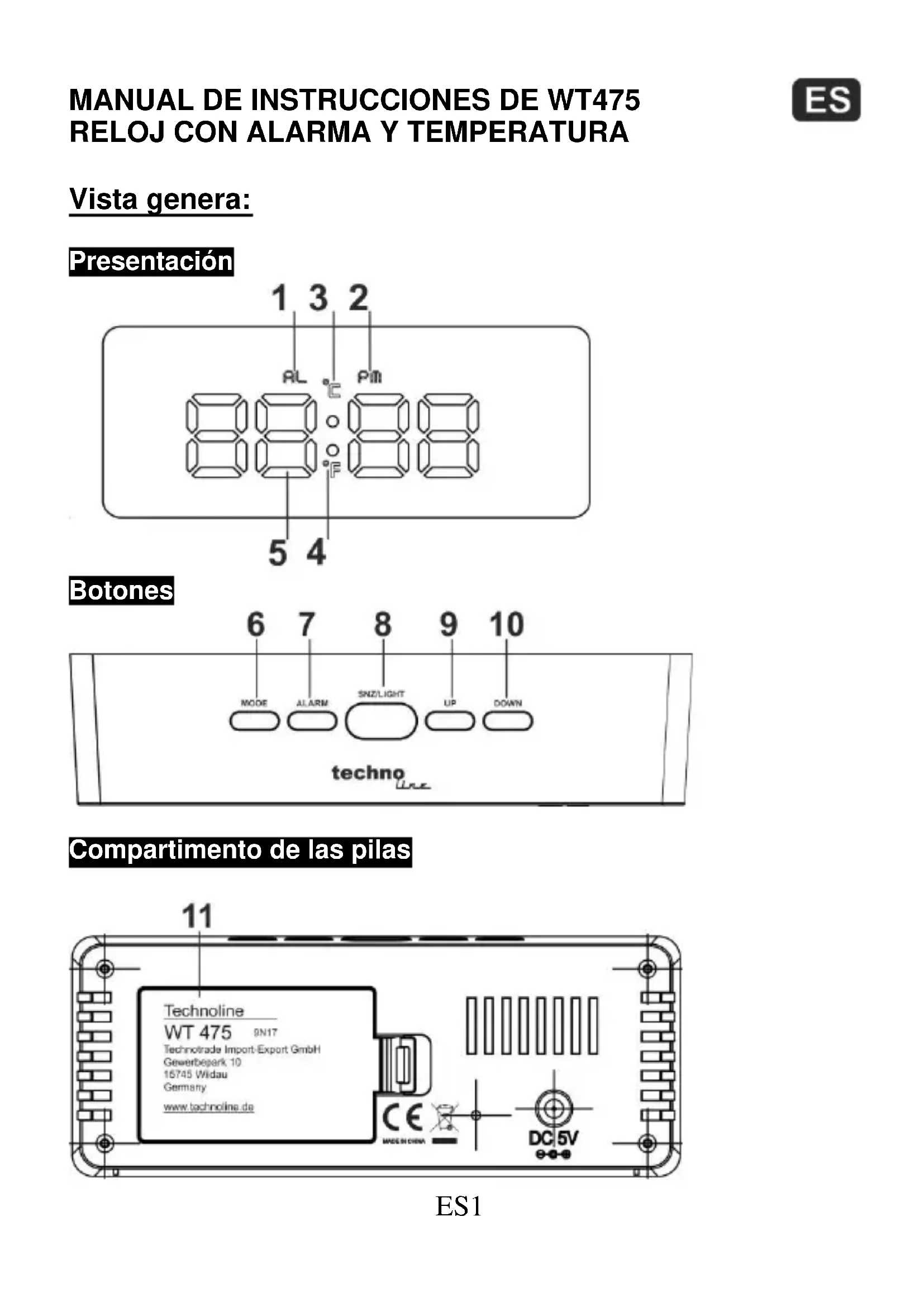 11 Technoline WT 475 9N17 Technotrade Import-Export GmbH Gewerbepark 10 15745 Widau Germany www.technoline.de CE MACSCHINA DC 5VNL1