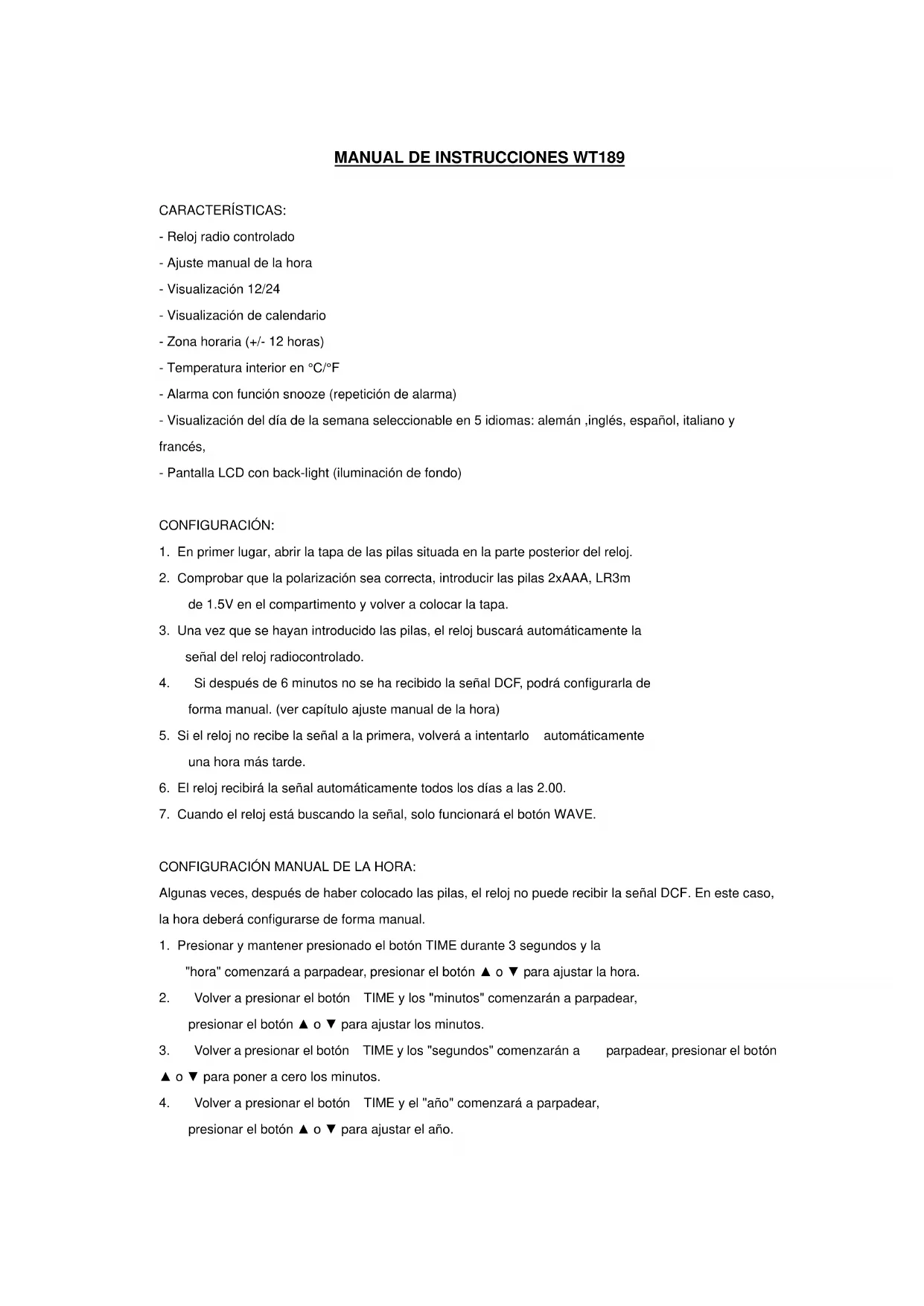 MANUAL DE USUARIO WT 189 TECHNOLINE