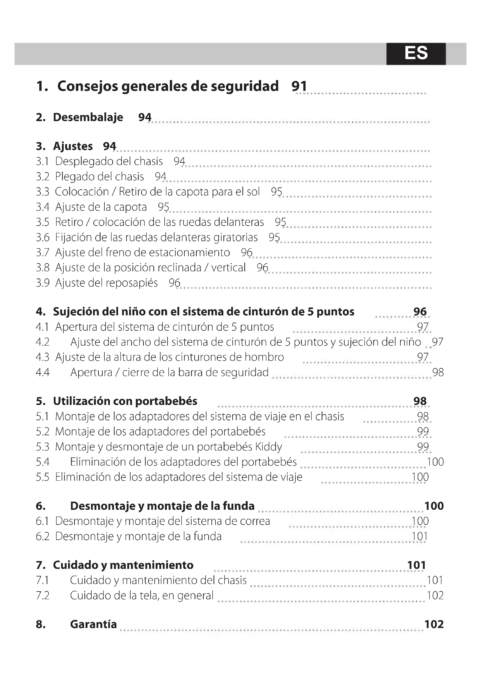 5. Utilización con portabebés 98