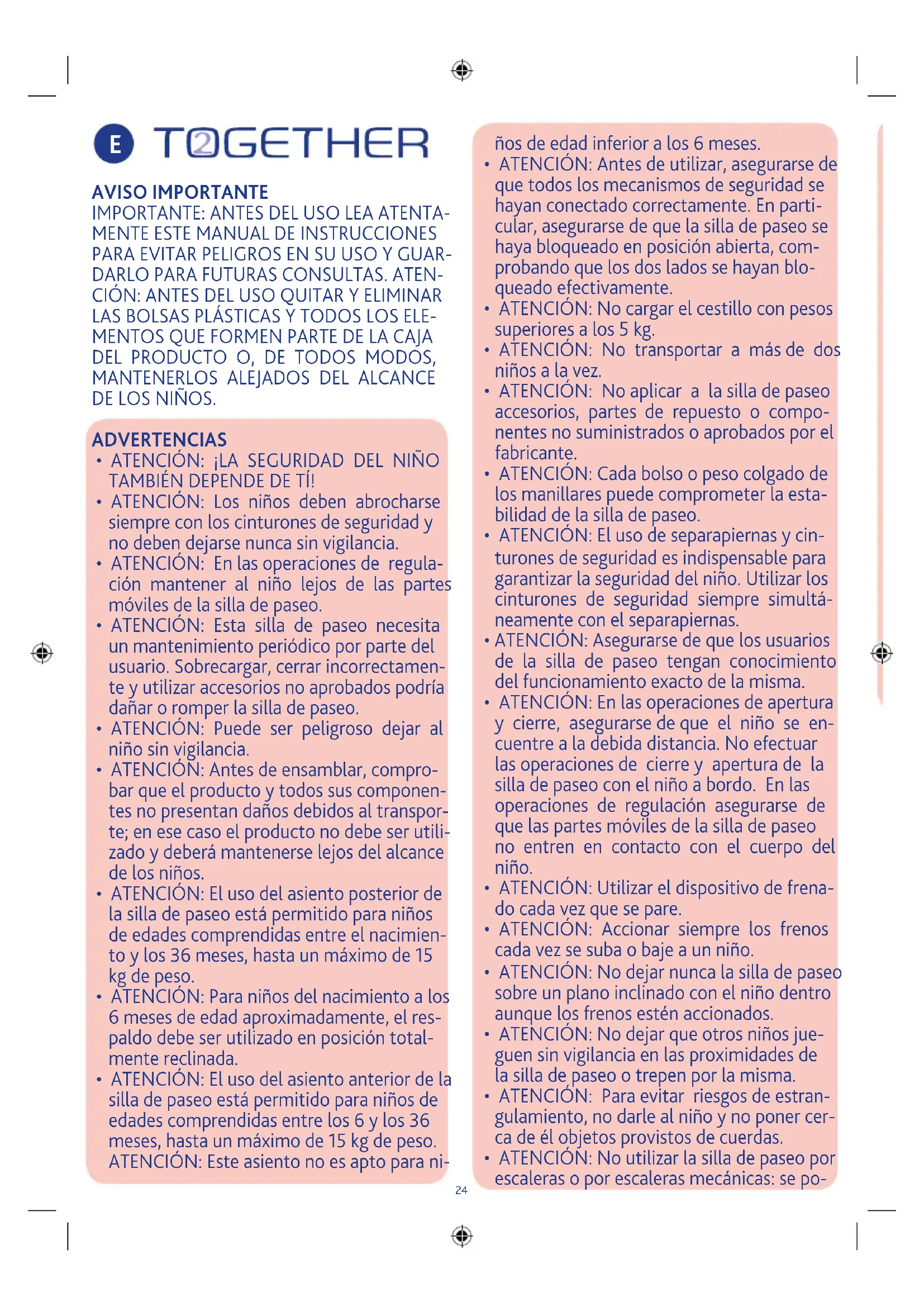 - ATENCIÓN: La silla de paseo tiene que ser guiada únicamente por un adulto.