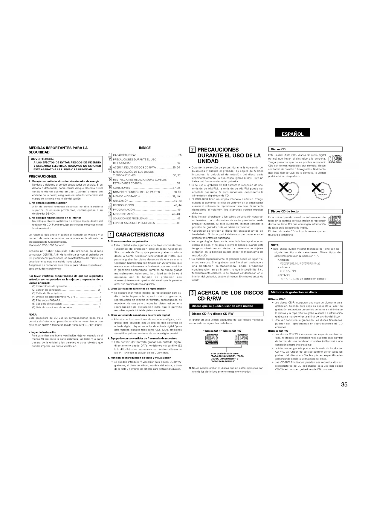 ACERCA DE LOS DISCOS CD-R/RW ………………35, 36