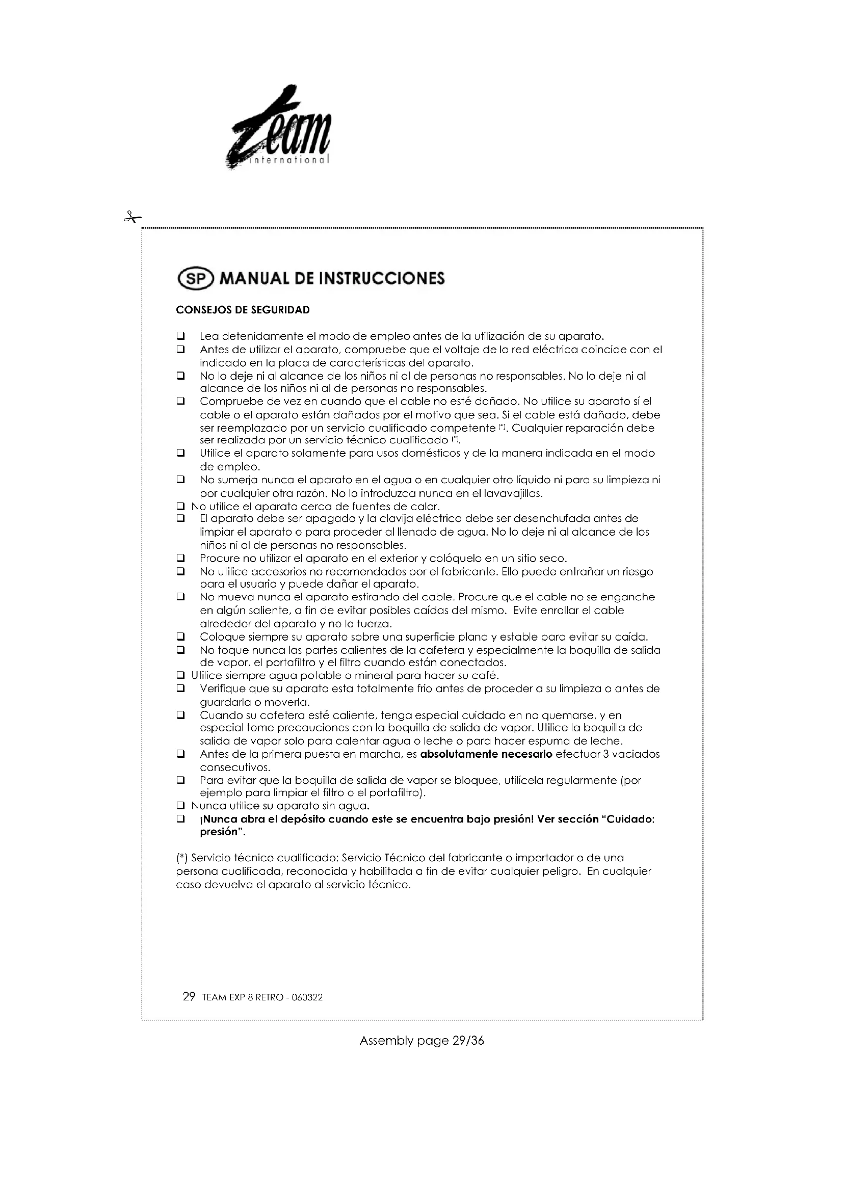 EXP 8 Retro - Maquina de cafe TEAM - Manual de uso y guía de instrucciones gratis