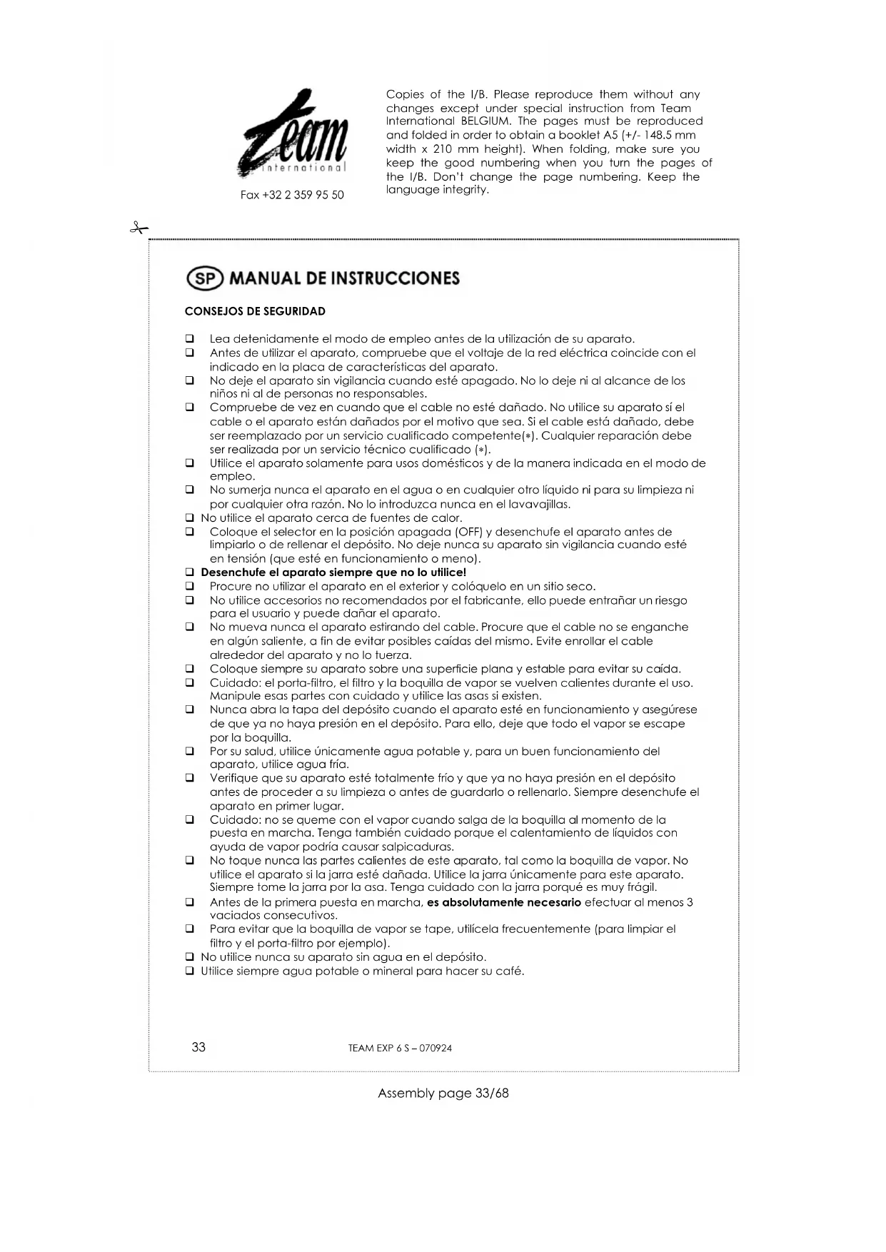 EXP 6 S - Maquina de cafe TEAM - Manual de uso y guía de instrucciones gratis