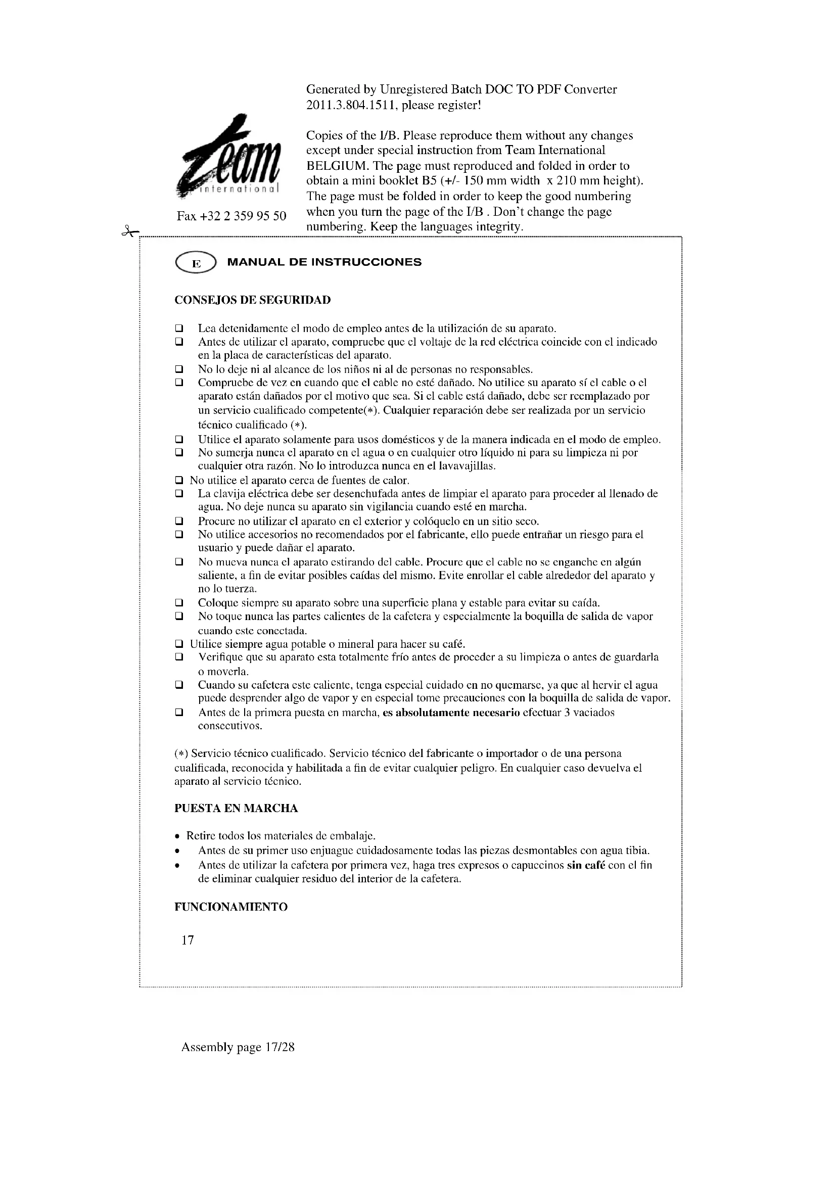 Descarga las instrucciones para tu Maquina de cafe en formato PDF gratis! Encuentra tus instrucciones EXP 3 - TEAM y toma tu dispositivo electrónico nuevamente en la mano. En esta página están publicados todos los documentos necesarios para el uso de su dispositivo. EXP 3 de la marca TEAM.