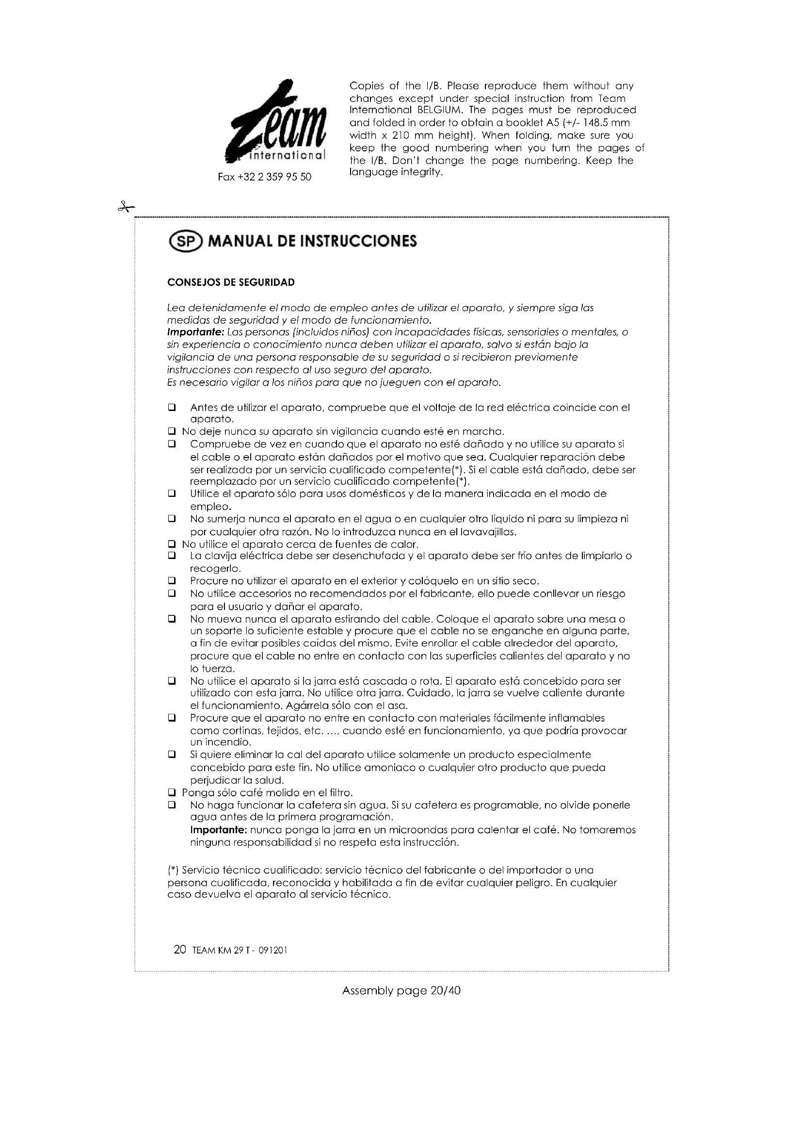 Encuentra gratis el manual del aparato KM 29 T TEAM en formato PDF.