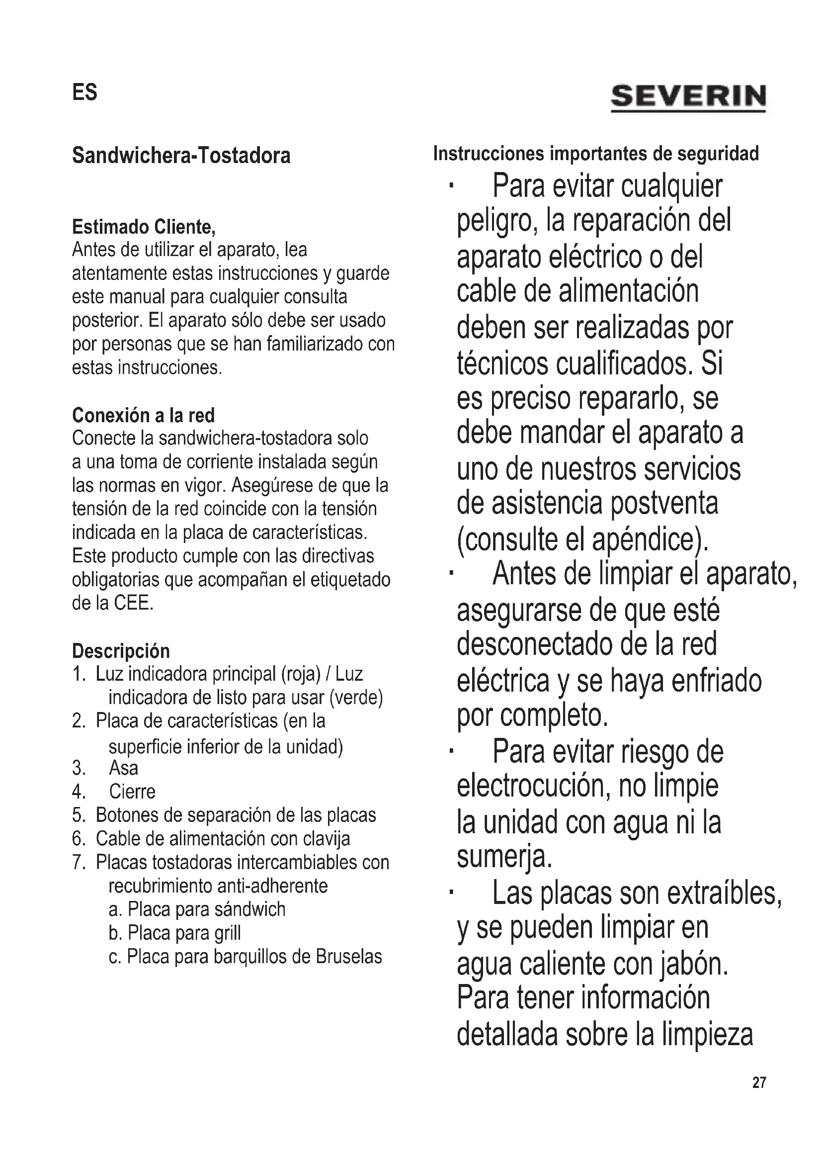 ES Instrucciones de uso Sandwichera-Tostadora 27
