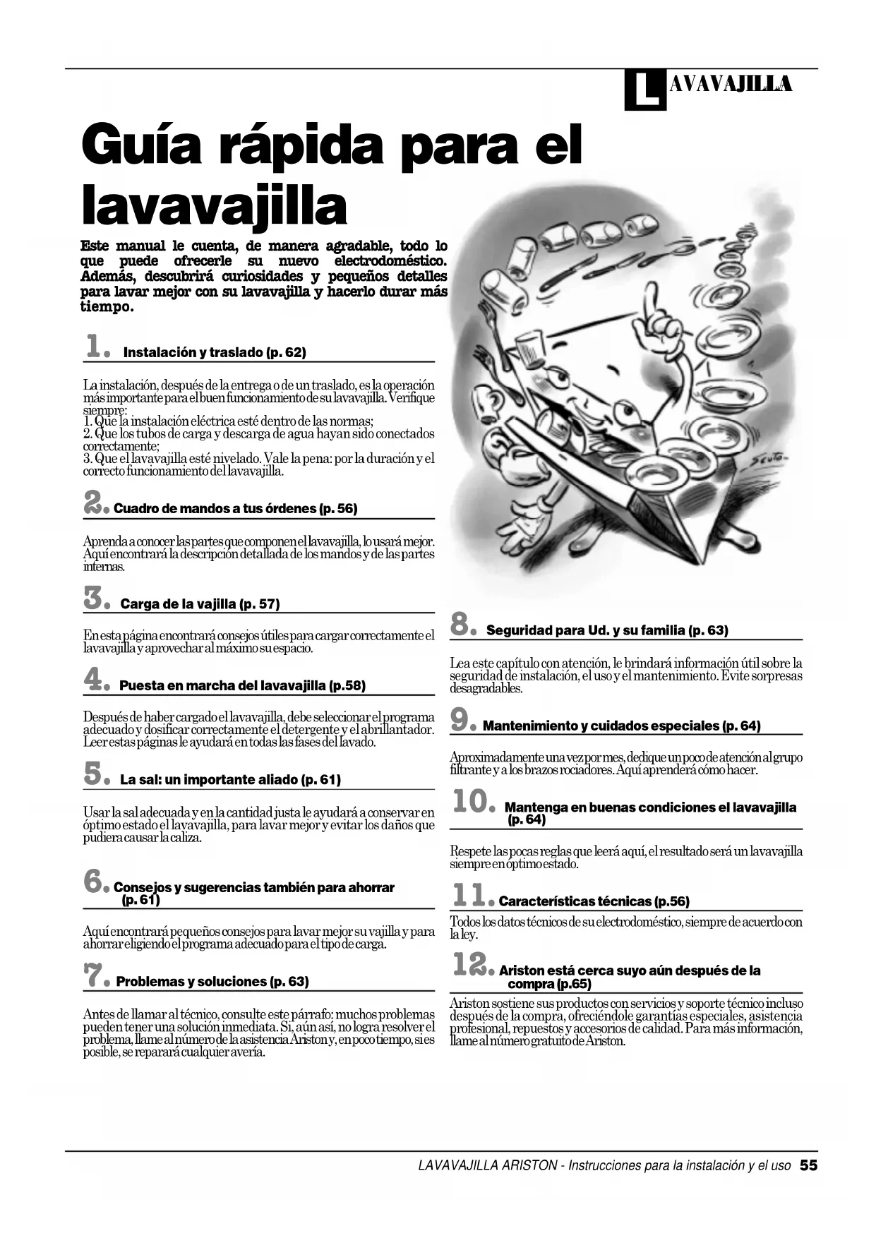AVAVAJILLA Este manual le cuenta, de manera agradable, todo lo que puede ofrecerle su nuevo electrodoméstico. Además, descubrirá curiosidades y pequeños detalles para lavar mejor con su lavavajilla y hacerlo durar más tiempo. Guía rápida para el lavavajilla