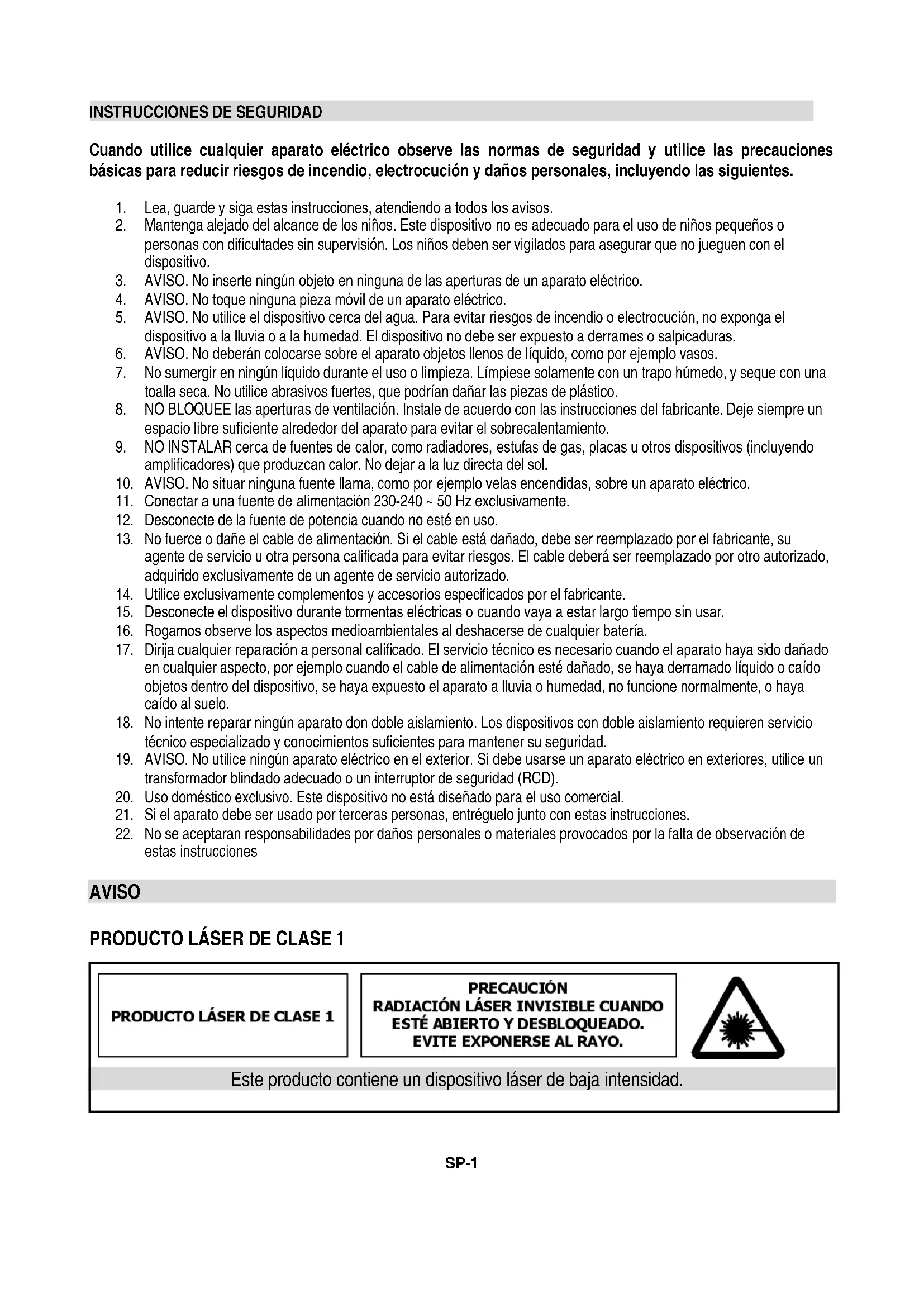 Este producto contiene un dispositivo láser de baja intensidad.