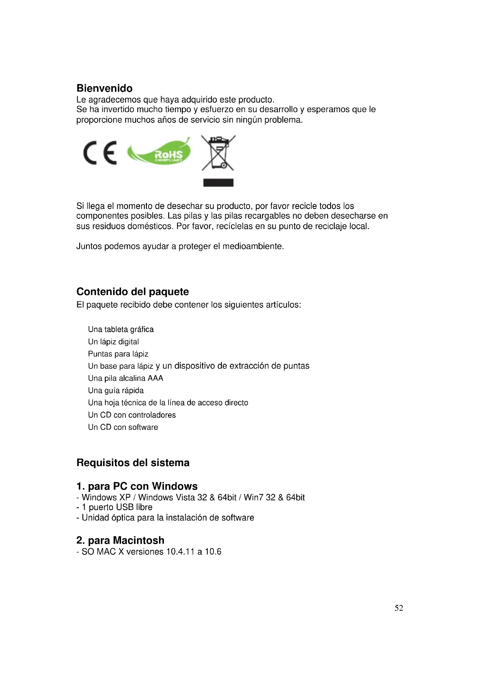 Contenido del paquete El paquete recibido debe contener los siguientes artículos: Una tableta gráfica Un lápiz digital Puntas para lápiz Un base para lápiz y un dispositivo de extracción de puntas Una pila alcalina AAA Una guía rápida Una hoja técnica de la línea de acceso directo Un CD con controladores Un CD con software