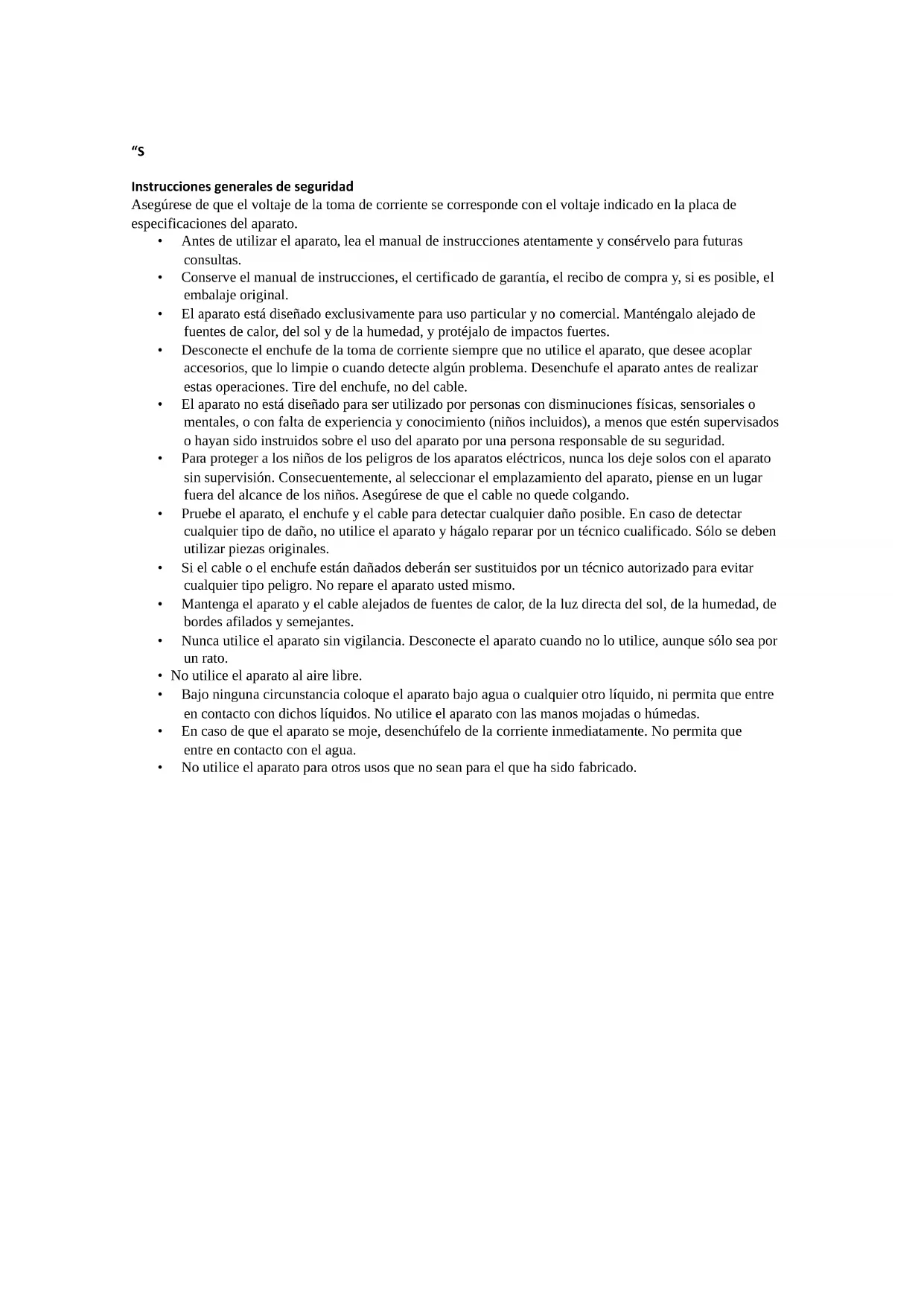 - El aparato no está diseñado para ser utilizado por personas con disminuciones físicas, sensoriales o mentales, o con falta de experiencia y conocimiento (niños incluidos), a menos que estén supervisados o hayan sido instruidos sobre el uso del aparato por una persona responsable de su seguridad.