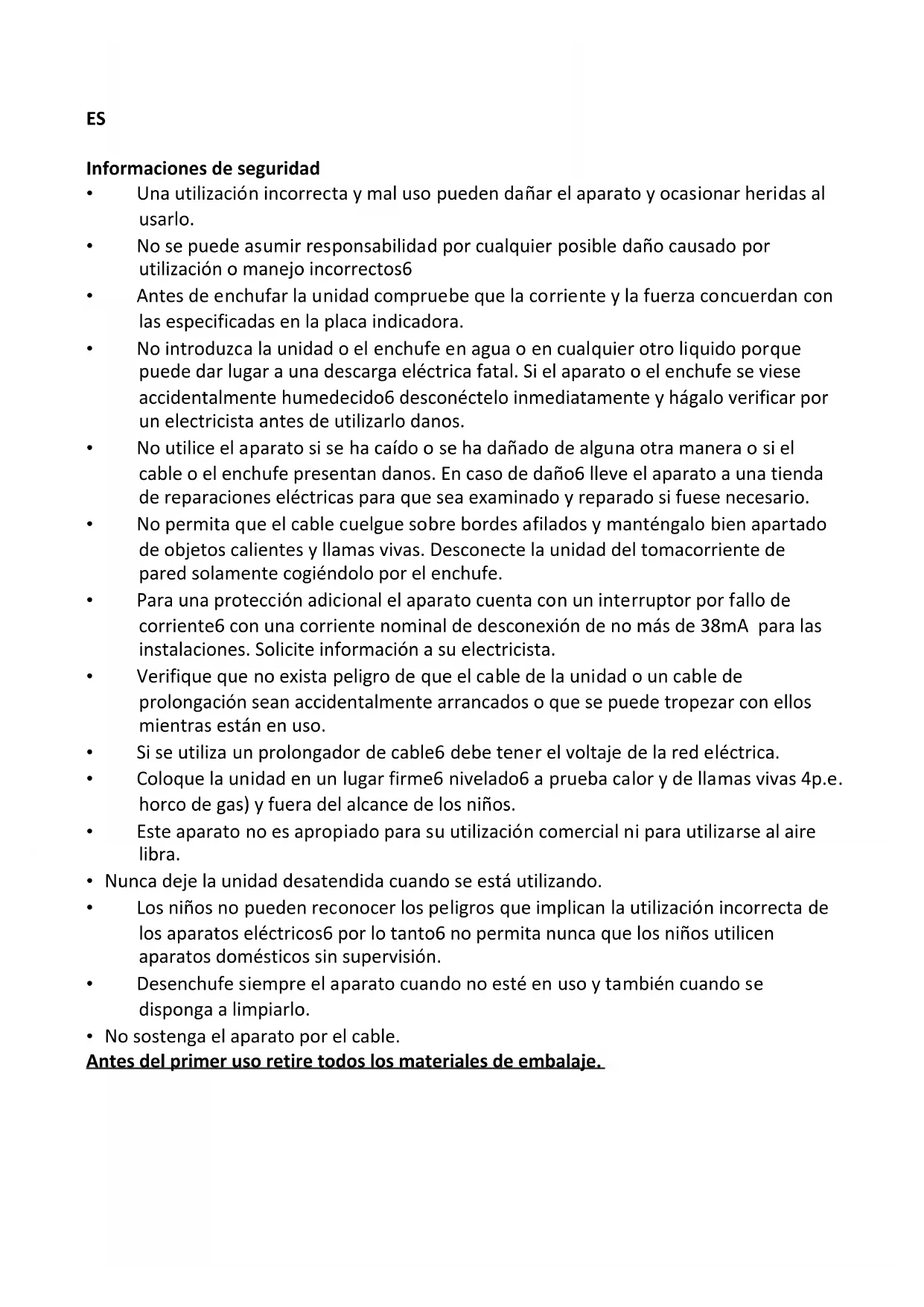 - Los niños no pueden reconocer los peligros que implican la utilización incorrecta de los aparatos eléctricos, por lo tanto, no permita nunca que los niños utilicen aparatos domésticos sin supervisión.
