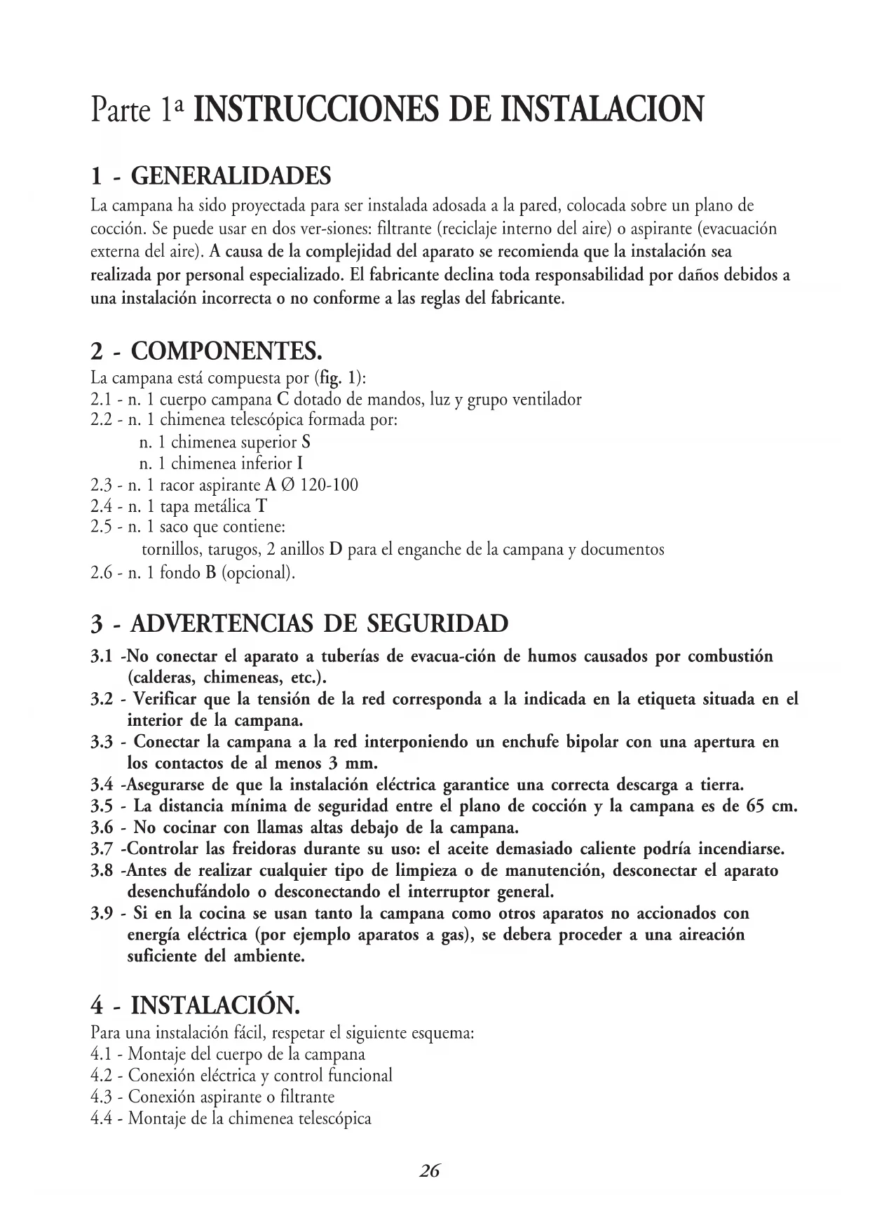3.1 -No conectar el aparato a tuberías de evacua-ción de humos causados por combustión