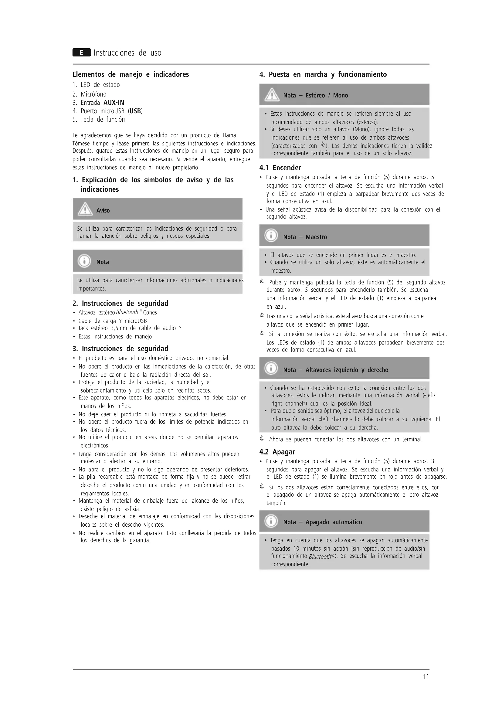 Nota – Estéreo / Mono• Estas instrucciones de manejo se reeren siempre al usorecomendado de ambos altavoces (estéreo).• Si desea utilizar sólo un altavoz (Mono), ignore todas lasindicaciones que se reeren al uso de ambos altavoces(caracterizadas con C). Las demás indicaciones tienen la validezcorrespondiente también para el uso de un solo altavoz.
