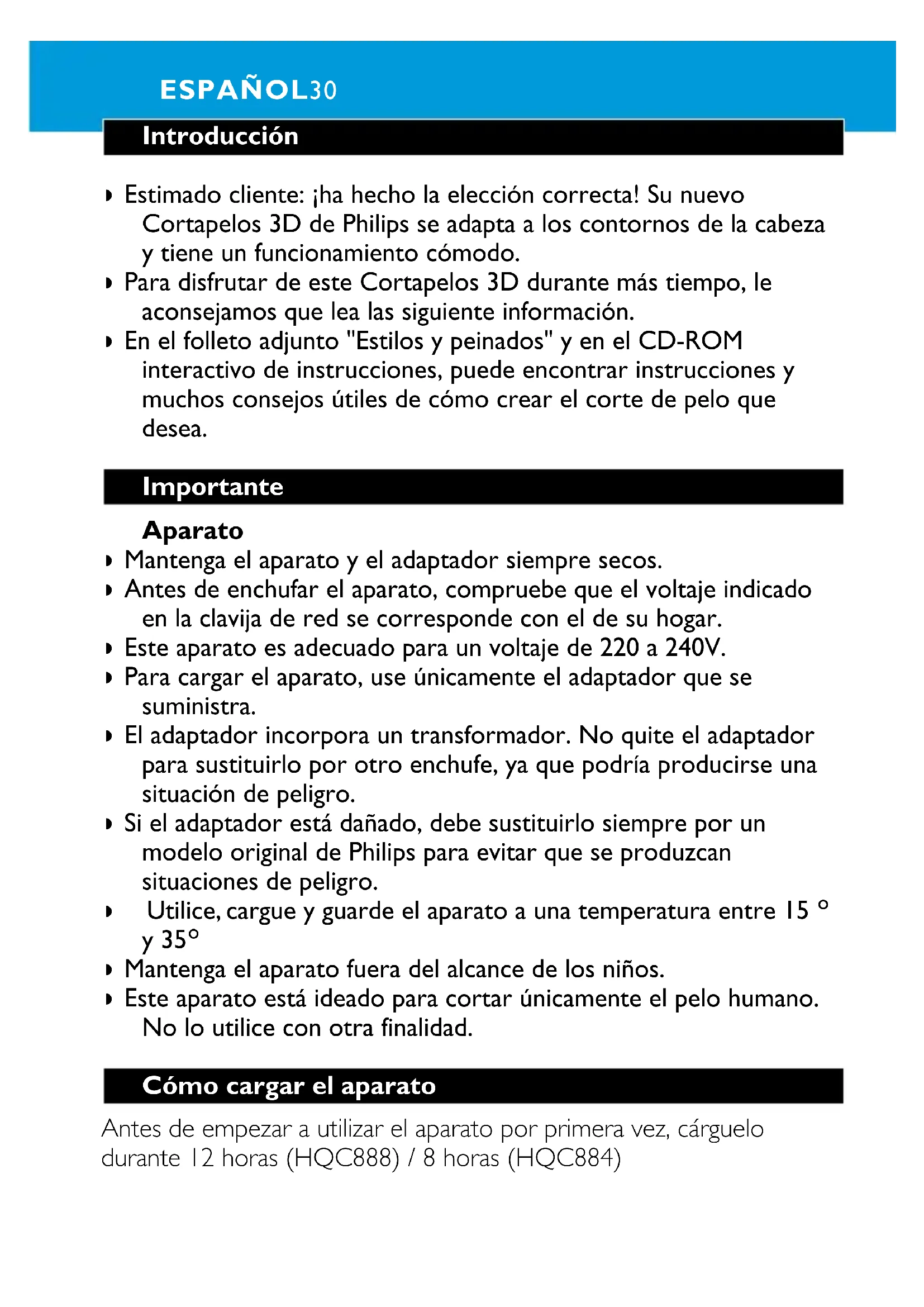 Encuentra gratis el manual del aparato HQC888 PHILIPS en formato PDF.