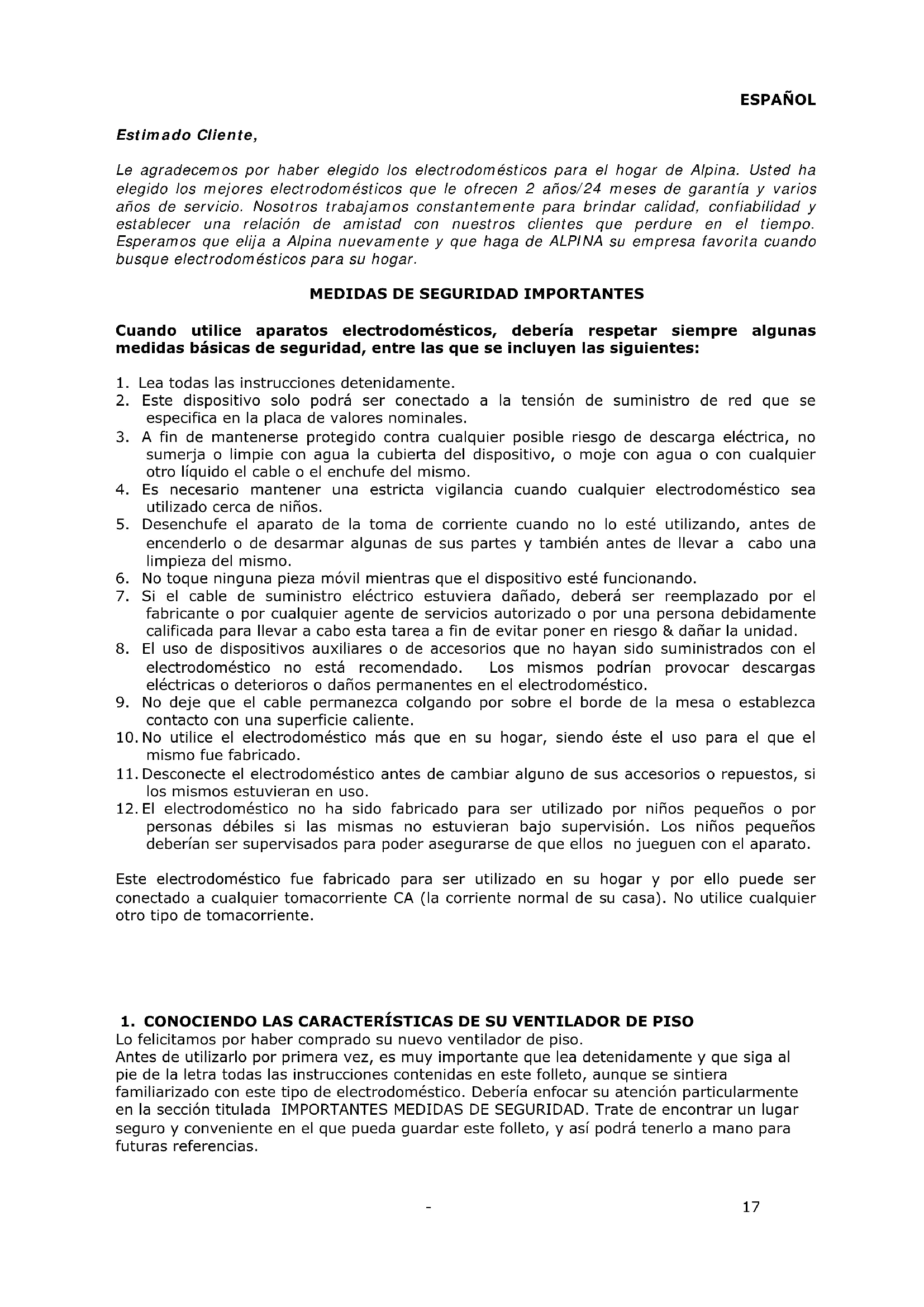 Le agradecemos por haber elegido los electrodomésticos para el hogar de Alpina. Usted ha elegido los mejores electrodomésticos que le ofrecen 2 años/24 meses de garantía y varios años de servicio. Nosotros trabajamos constantemente para brindar calidad, confiabilidad y establecer una relación de amistad con nuestros clientes que perdure en el tiempo. Esperamos que elija a Alpina nuevamente y que haga de ALPINA su empresa favorita cuando busque electrodomésticos para su hogar.