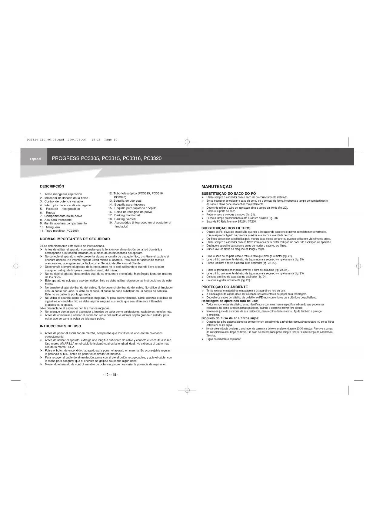 PC3316 - Aspiradora PROGRESS - Manual de uso y guía de instrucciones gratis