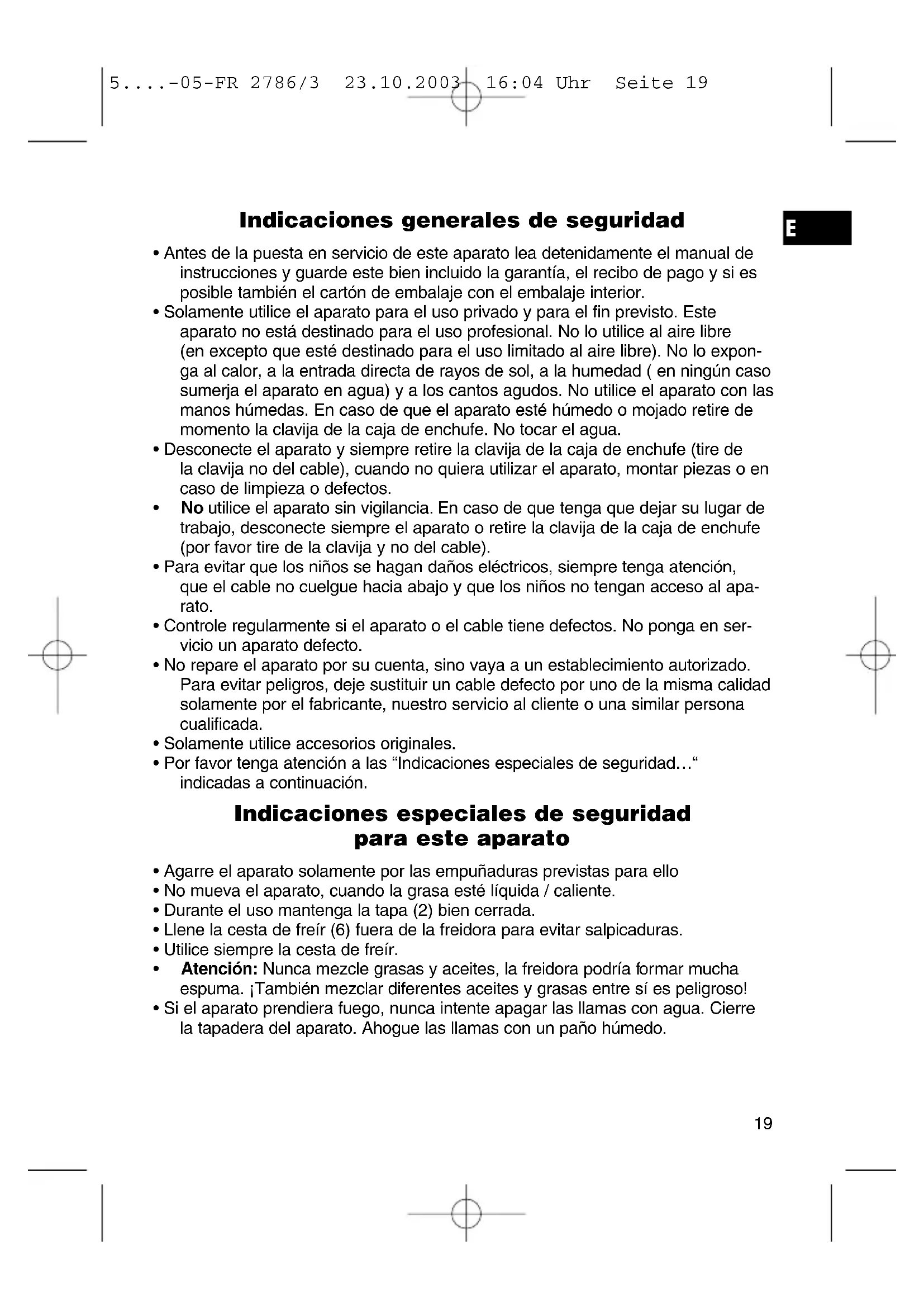 norma: Alimentos precocinados necesitan una mayor temperatura que alimen- tos frescos. 5....-05-FR 2786/3 23.10.2003 16:04 Uhr Seite 205. Cuando esté el aceite o la grasa todavia caliente, no debe mover o desplazar la freídora.