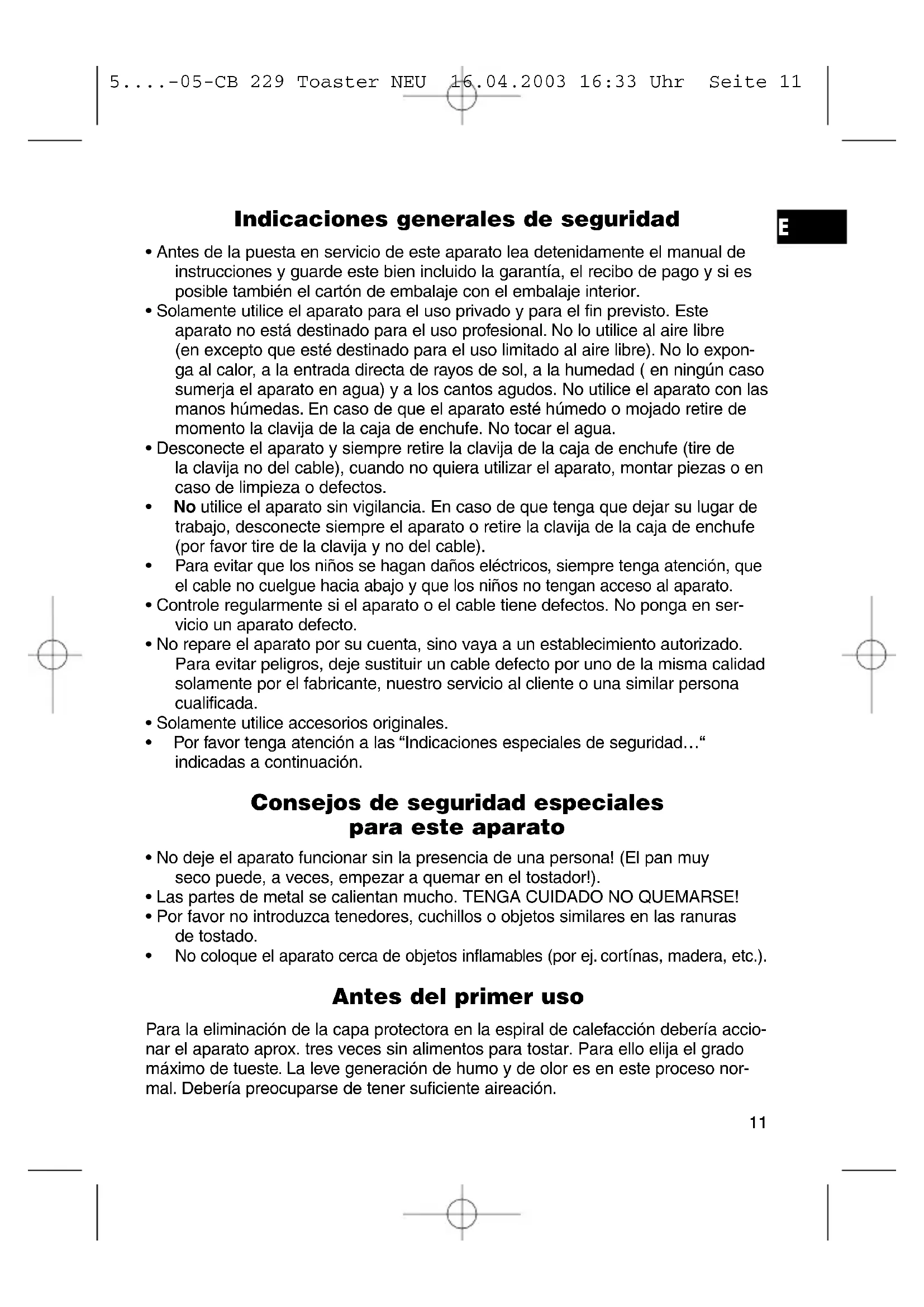 - Por favor no introduzca tenedores, cuchillos o objetos similares en las ranuras de tostado.