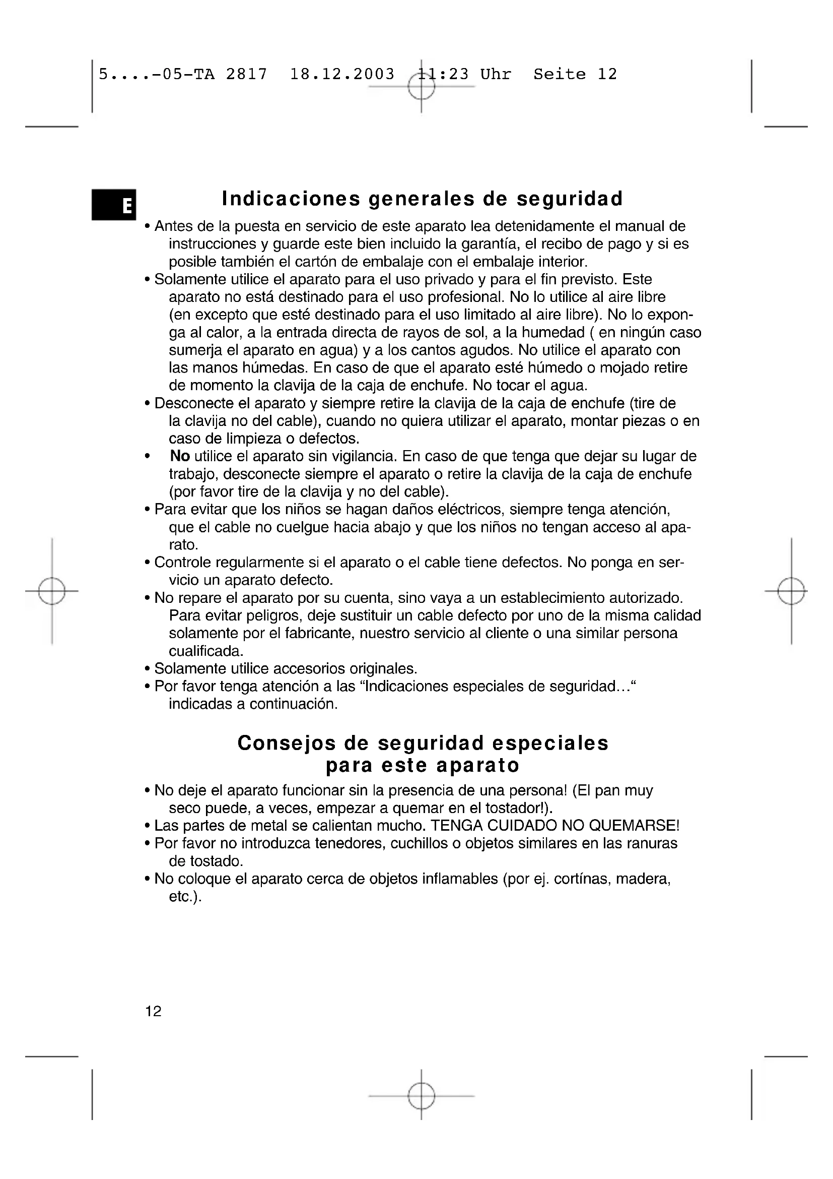 - Por favor no introduzca tenedores, cuchillos o objetos similares en las ranuras de tostado.