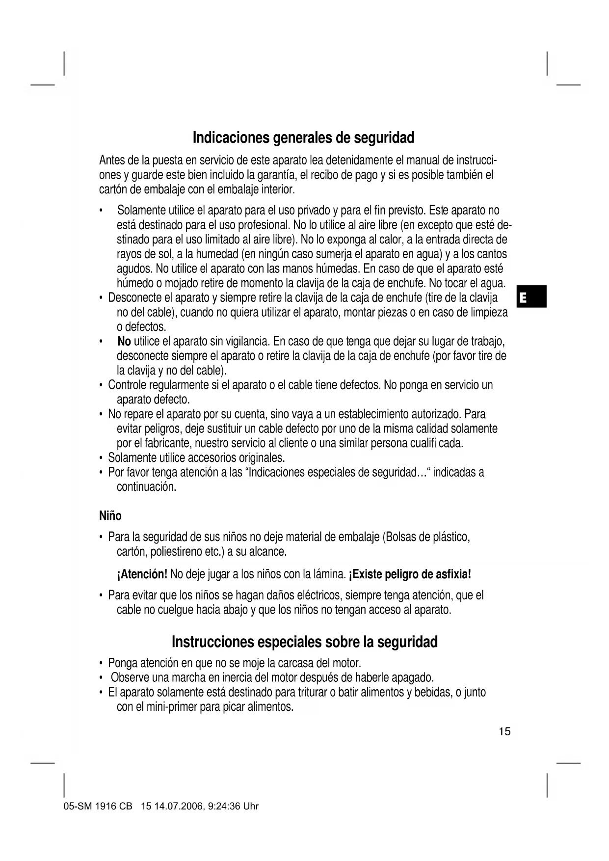 - El aparato solamente está destinado para triturar o batir alimentos y bebidas, o junto con el mini-primer para picar alimentos. 05-SM 1916 CB 15 14.07.2006, 9:24:36 UhrE