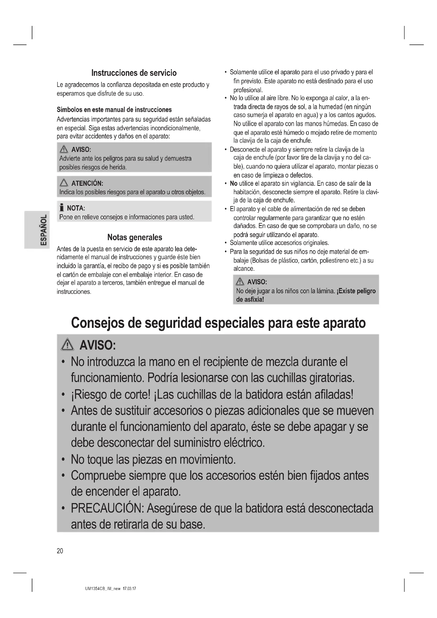 - PRECAUCIÓN: Asegúrese de que la batidora está desconectada antes de retirarla de su base.21 UM1354CB_IM_new 17.03.17 AVISO: